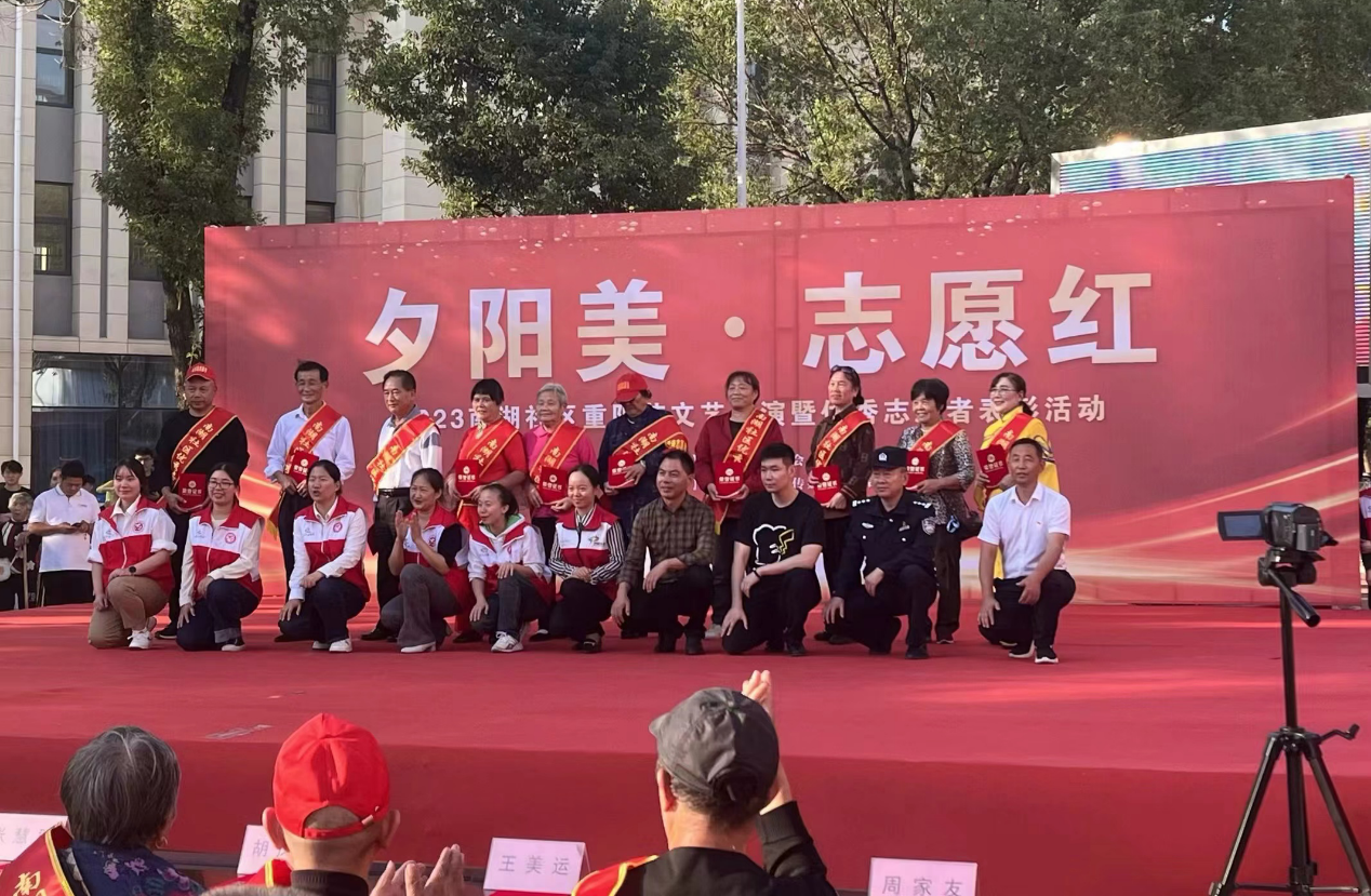 志愿星火暖阳,服务精神传承。在文艺汇演活动过程中,“南湖社区夕阳红志愿者服务队”“南湖社区暖阳党员志愿者服务队”“南湖社区爱之行志愿者服务队”等六个志愿服务队受到了表彰。当主持人讲述出他们的先进事迹时,现场观众爆发出雷鸣般的掌声,志愿者们被南湖社区浓厚的志愿服务氛围深深地震撼。