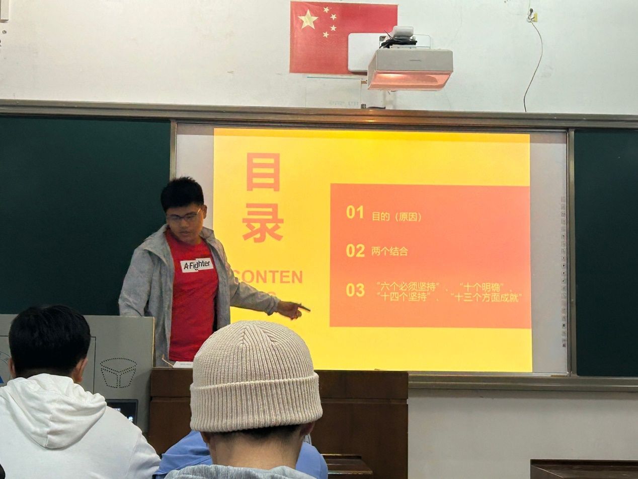 在“思想旗帜”主题的板块中,团支书带领我们深入研究了习近平新时代中国特色社会主义思想的核心要义,通过深入浅出的讲述,同学加深了对党的创新理论的理解,有助于为同学们的未来发展指明方向,增强其认同感和使命感,培养担当复兴大任的时代新人。