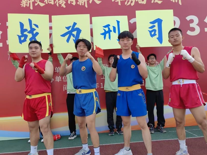 新闻网讯 (学生记者 邓元君 郭哲 陈可璇 余青天)朗朗朝阳,湛湛天蓝。11月3日上午8:30,在经过数周准备后,中南财经政法大学2023年校运动会拉开了序幕!在振奋人心的进行曲中,在慷慨激昂的战鼓声中,在振聋发聩的口号声中,刑事司法学院方阵闪亮登场。红旗猎猎,迎风以展,步伐锵锵,撼地而响,刑司学子,蓄势待发,他们高举着“战为刑司”的牌子,昂首挺胸地走过主席台,向全校师生展现我院团结一致、力争上游的精神风貌。同时,本次入场式还加入了散打表演,散打队员们拳风刚劲,腿法有力,展现我院运动员的英姿与神采。