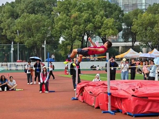 (图为史钟达同学跳高 团委宣传部新闻办公室学生记者 李延栩 摄)