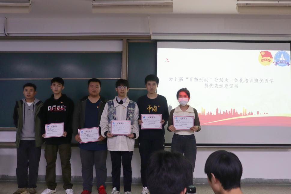 最后,张凡稷老师为上一届“青苗刑动”分层次一体化优秀学员代表颁发荣誉证书,对他们给刑事司法学院分团委学生发展工作做出的贡献以及注入的青春力量提出表扬。