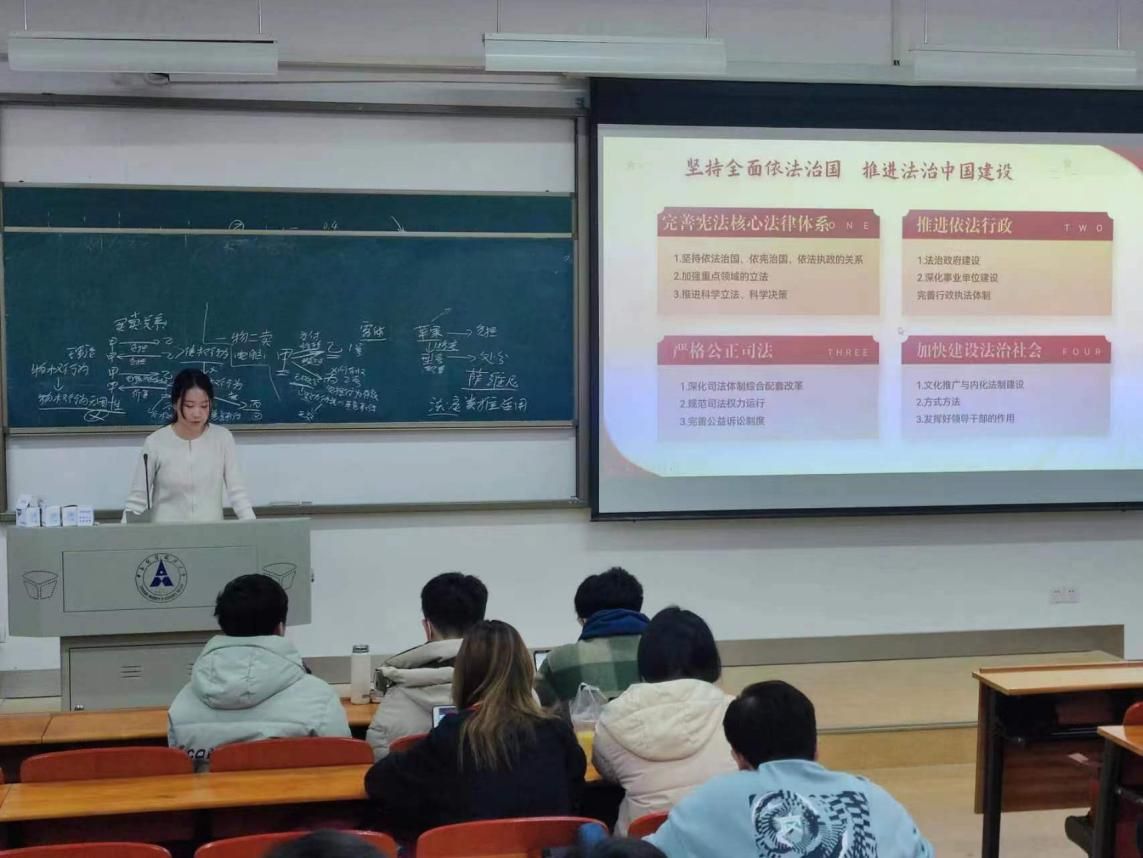 团课第一个部分为深入学习二十大的精神内涵。此次学习的内容主要是二十大报告中有关坚持全面依法治国,推进法治中国建设、推进文化自信自强、铸就社会主义文化新辉煌以及推进国家安全体系和能力现代化、坚决维护国家安全和社会稳定的内容。其中关于增强国家安全体系,强化国家安全工作协调机制,完善社会治理体系,加快推进市域社会治理现代化,强化社会治安整体防控的内容与侦查学和治安学专业密切联系,团支部成员通过相关政策文件了解自己的专业发展方向,并对相关内容有自己的感想。