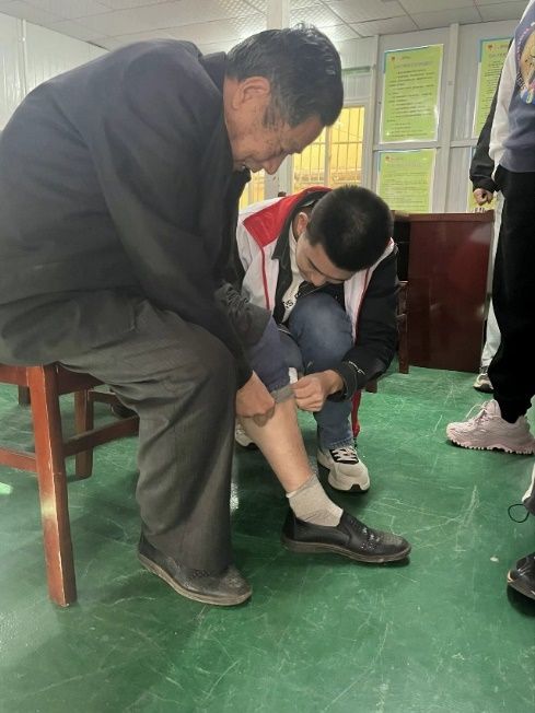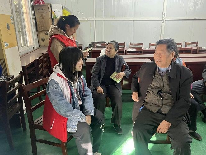 “你们都多大?。可细呒咐玻俊薄澳忝鞘悄母鲅5难??”在服务过程中,老人们也逐渐敞开心扉,对志愿者们产生兴趣,主动与志愿者们唠上了家常,尽管只是一些家常话,但相谈甚欢,一句句家长里短,尽显一派其乐融融的氛围。