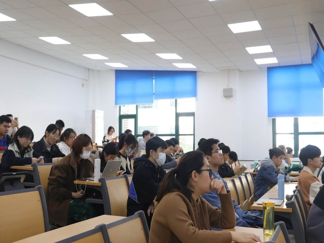 第一位分享的是万学教育·海文考研教学与研究中心的谭晓禹老师,他的讲座主题是“2025届完美考研之路启动规划课程”。根据前期同学们的问题反馈,谭老师针对性地从三个方面展开分享。首先是对考研形势的宏观分析,通过具体的数据让同学们对考研基本情况形成清晰的认识;其次,谭老师讲述了院校专业选择方案,从三次选择和三次适配详细地传授了专业选择的方法;最后,谭老师介绍了全科启动备考策略,逐一分析了每个学科的学科特点、复习方法、学习任务等,同时强调了在备考过程中端正态度、把握时间的重要性。
