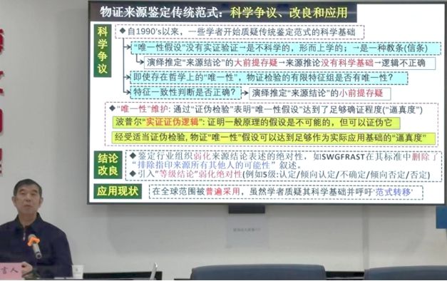 王桂强教授学术报告主要内容分为四个部分:1.物证鉴定范式及发展概念;2.贝叶斯概率评估框架要点;3.概率鉴定意见优势及局限;4.概率范式应用及范式转换。