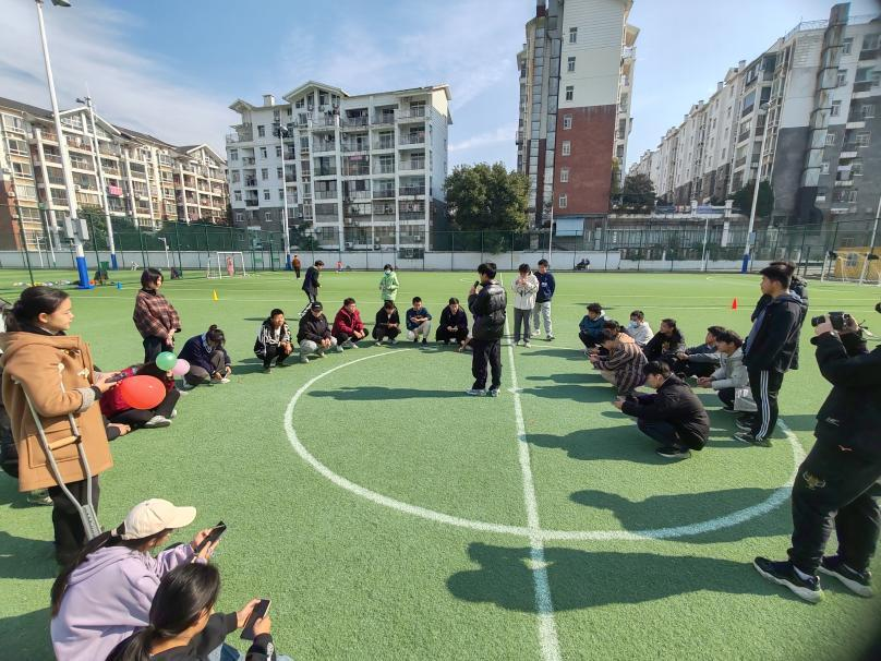 终极挑战,紧张刺激添乐趣。每名同学脚上都绑上 3个气球,三组同学进行混战,目标是踩爆其他队的气球。过程中成员间的互动显著提升,这样紧张的气氛快速拉近了大家之间的距离。