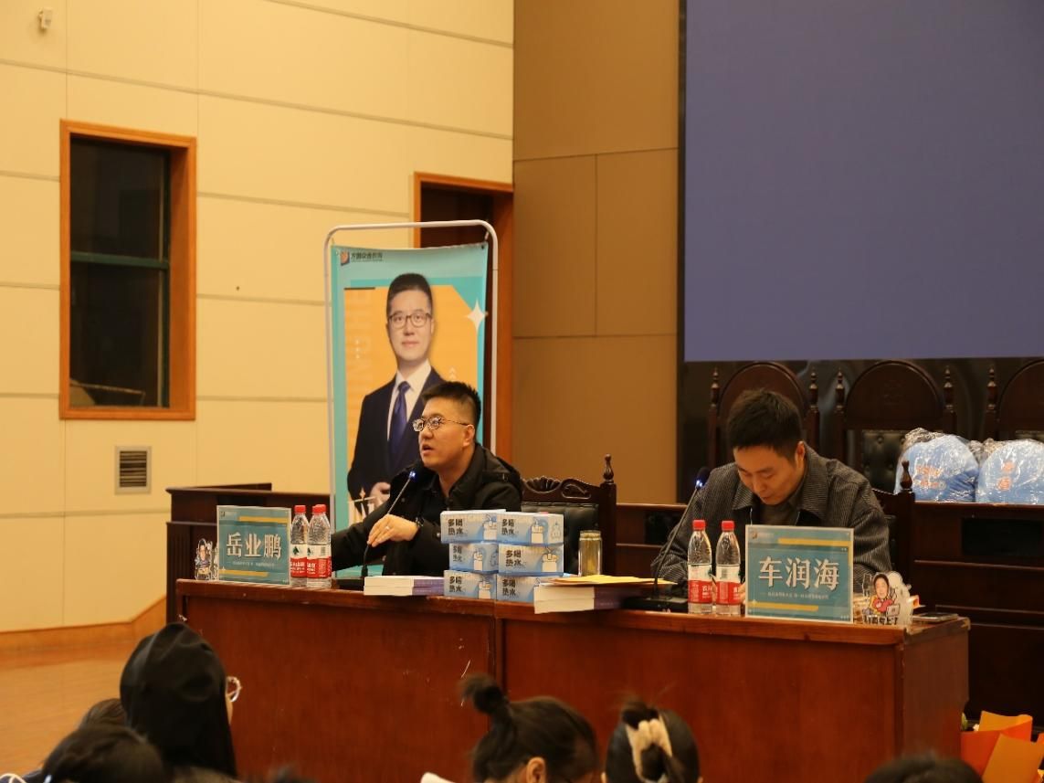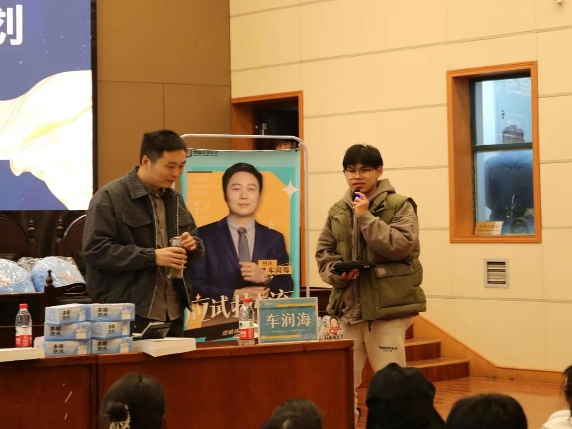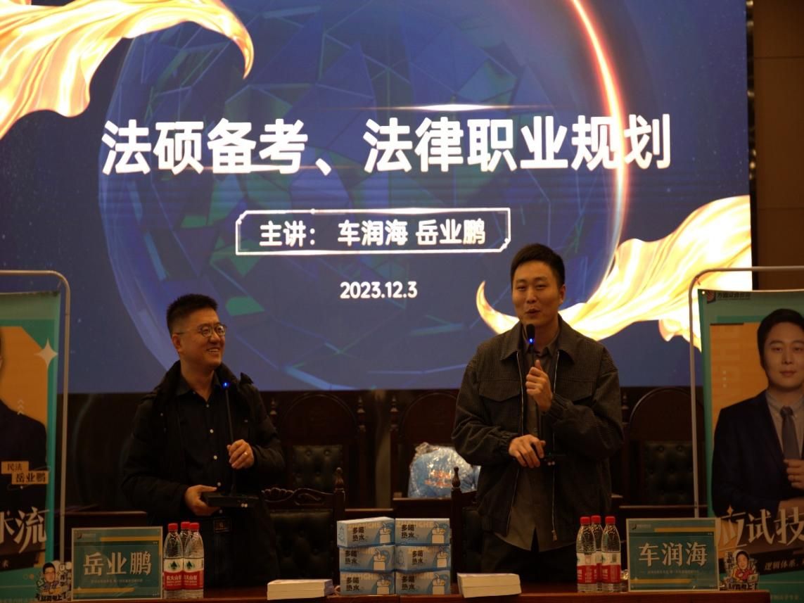 再次,两位老师分享了研究生生活的宝贵经验。岳业鹏老师强调,研究生阶段要重视打基础、多读书和早准备。打基础就是要重视基础理论,多读书就是要珍惜大学的读书时光,早准备就是要尽早确定毕业论文的方向,并朝这个领域深耕。接着车润海老师用幽默的语言,通过讲述自己读研究生时通读全国权威判例的故事,向我们教授了确定研究方向的方法,展现了他在法律学习上刻苦钻研的精神。最后,两位老师暖心地嘱托正在备考12月法硕的同学:查漏补缺,调整状态。