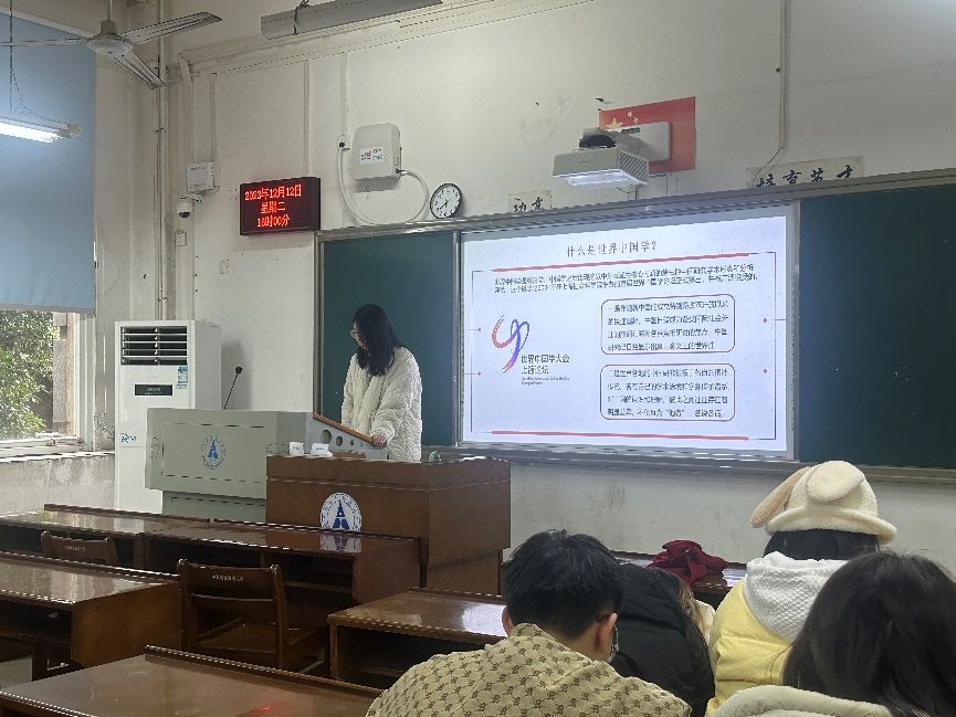 活动第一项,由团支书带领同学们了解世界中国学论坛的相关背景知识,了解中国学的产生由来及其开展目的。除此之外,同学们还进一步了解了本届大会全球视野下的中华文明与中国道路的主题,了解了大会探讨的大致内容,体会到了大会开展重要意义。通过对世界中国学论坛背景知识的学习,同学们理解了让世界知道“学术中的中国”“开放中的中国”“为人类文明做贡献的中国”的重要性,纷纷表示今后将提高对中国学的关注程度,为弘扬中国学、发扬中华文化贡献力量。
