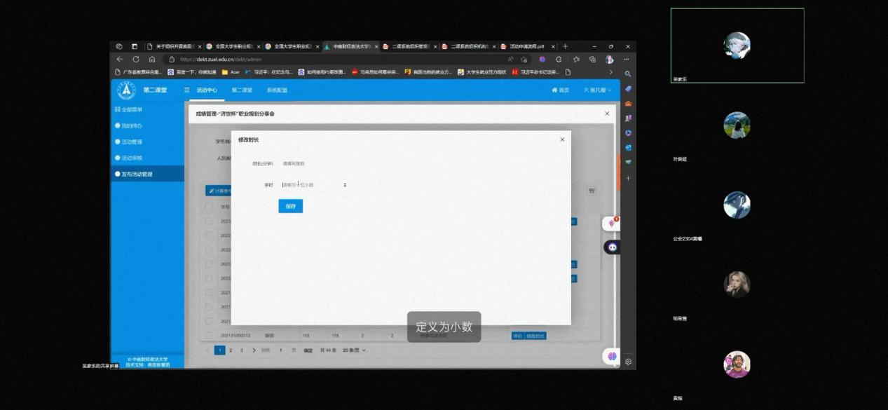 本次培训会主要包括系统介绍、高级功能操作演示和线上提问三个环节。开场致辞中,宣讲人吴家乐强调了二课系统在学生工作中的重要性,随着二课系统的更新,团学组织干部需要不断学习和适应新的系统和工具操作方法,以便于更高效地完成学生工作。