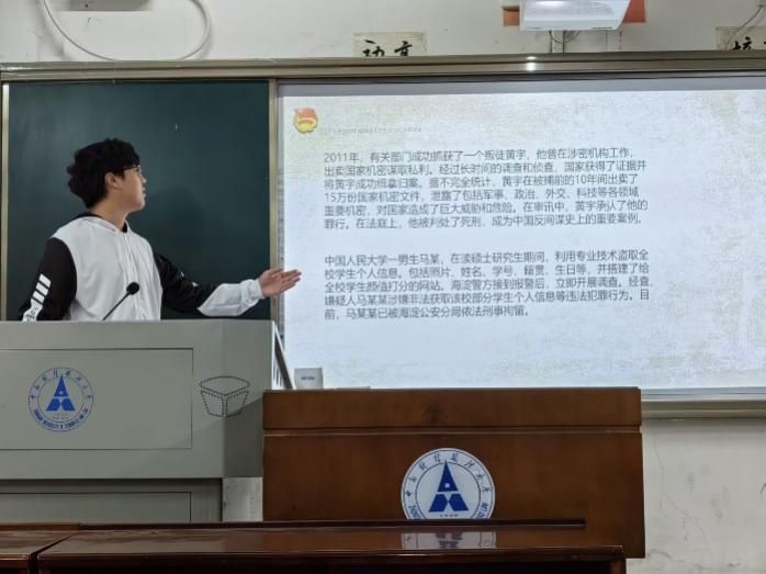 活动第二项,团支书以网络的不同作用开题,在说明网络在当下生活中不可或缺后,对大家做出提醒:网络是一把双刃剑,在便利生活,联系你我的同时,也具有隐藏的风险,如网络诈骗、网络暴力、网络间谍、网络泄密等。接着,团支书结合具体案例介绍常见的网络危害,并告诉大家要绿色上网,合理运用网络,做网络安全的维护者、社会责任的践行者和网络文明的参与者。