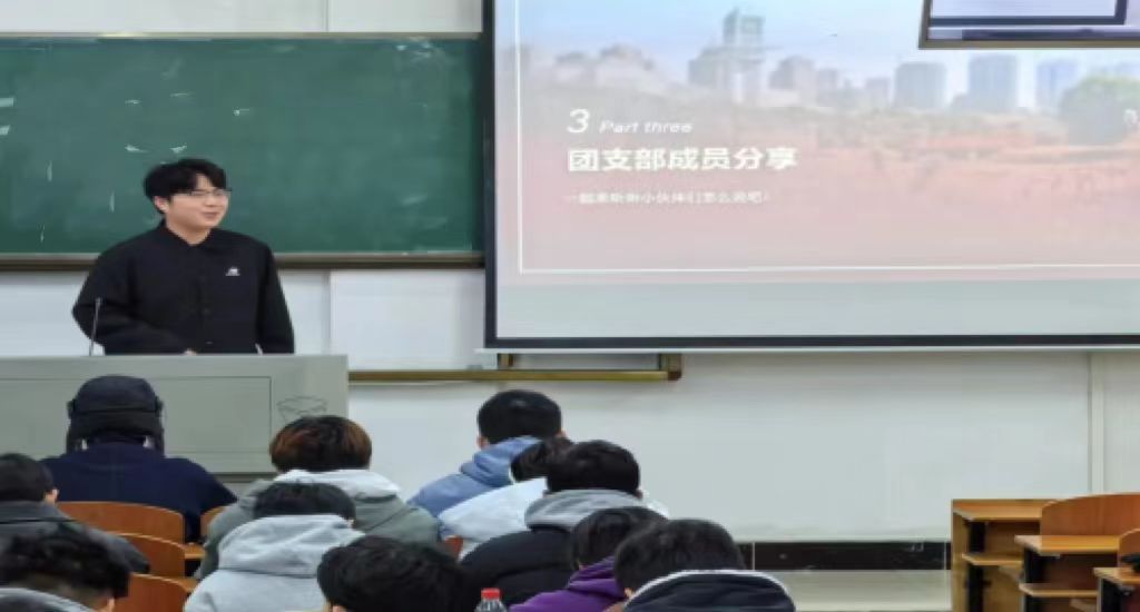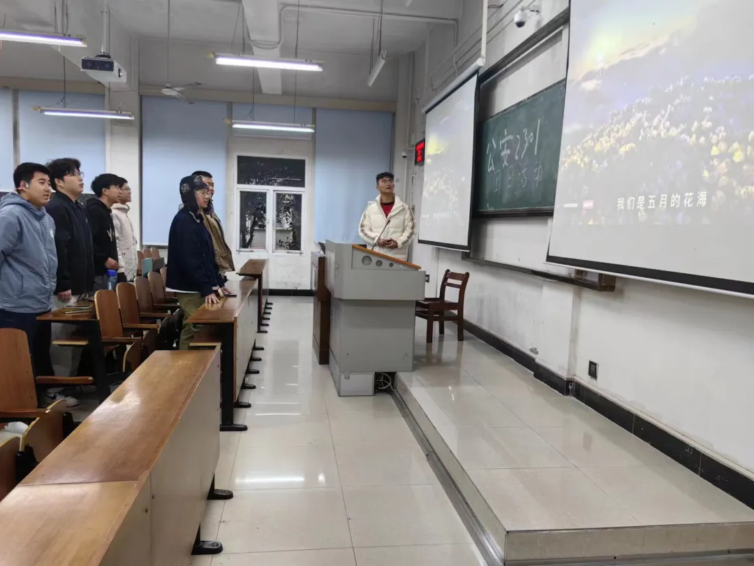 活动伊始,全体成员齐唱中国共产主义青年团团歌。随后,团支部副书记侯昊坤为带领大家走进今天的大会主题。