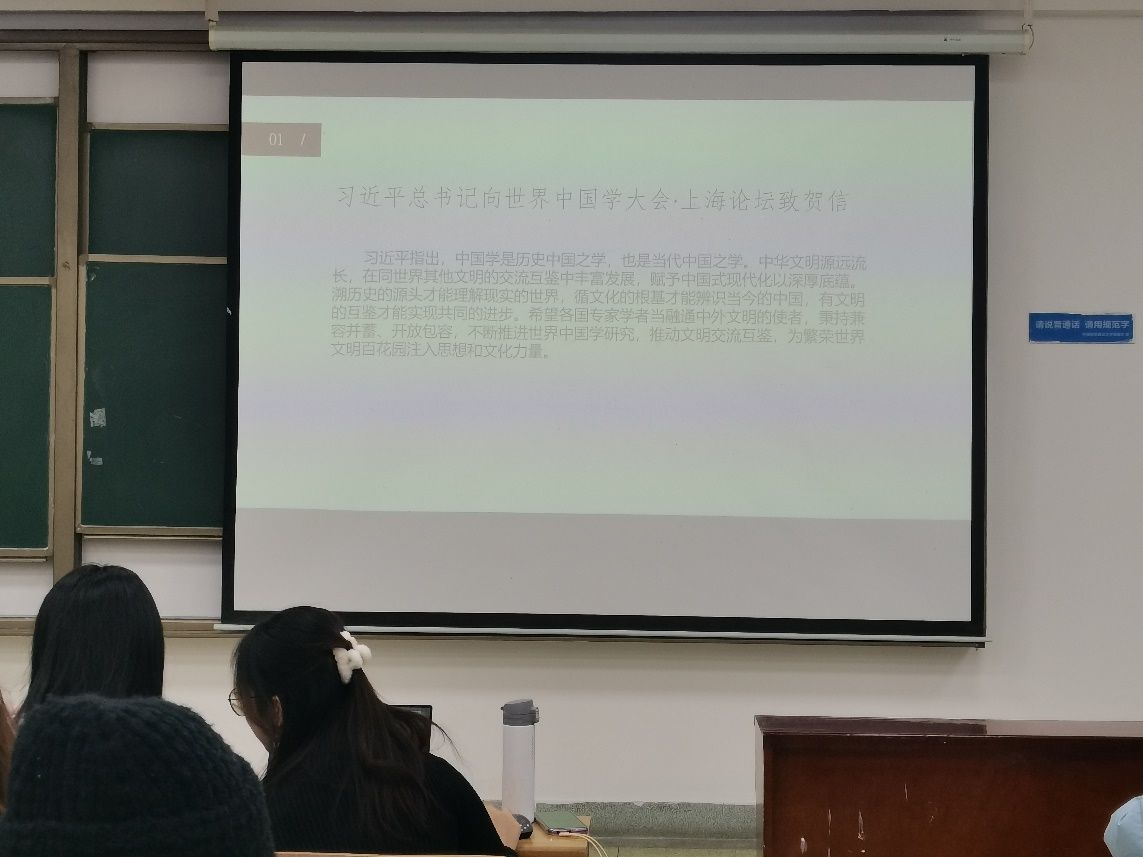 此外,习近平总书记表示,希望各国专家学者担当融通中外文明的使者,秉持兼容并蓄、开放包容的精神,为繁荣世界文明百花园注入思想和文化力量。同学们表示将会在实践中践行习近平总书记的殷切希望,坚持文化自信,推广中国之学,汇通中外,以实际行动推动中外文明交流。