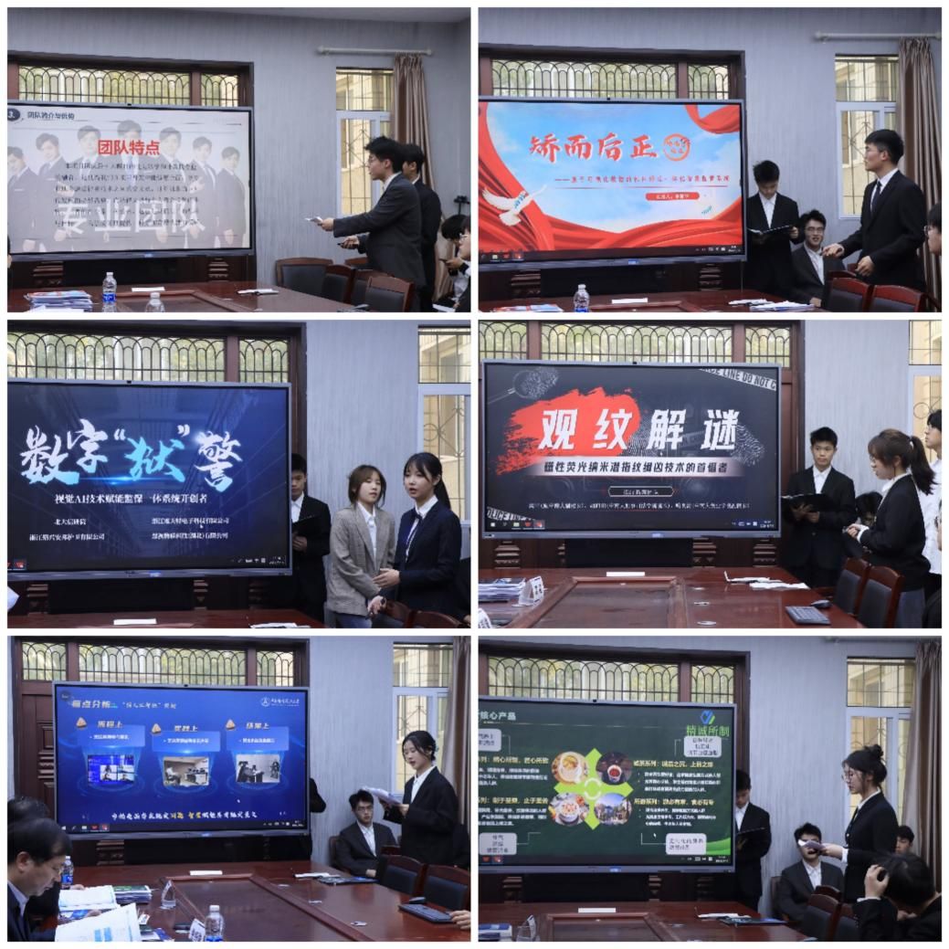 在现场答辩环节中,创业类赛道的各队答辩人先后上台展示了“矫而后正——基于可视化数据的社区矫正一体化智慧监管系统”、“观纹解谜——磁性荧光纳米潜指纹缉凶技术的首倡者”、“数字‘狱’警——视觉AI技术赋能监保一体系统开创者”等7个项目成果。各团队通过丰富的PPT内容、精彩流利的演讲完成了项目答辩。项目涵盖科技、生活、司法、食品等各类问题,专业涉及面广,话题探讨深刻。