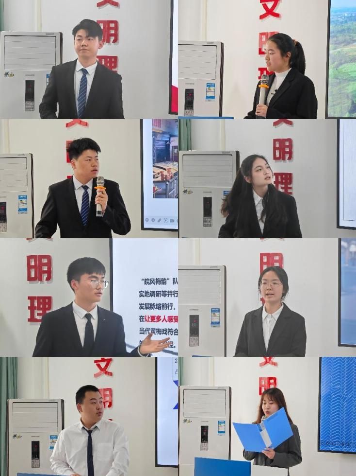 会议伊始,各组依次上台进行项目介绍与风采展示。在此次寒假社会实践中,各队伍的实践选题新颖、涉猎广泛、内容丰富、方式多样。胡括州同学所在团队以二十大发展养老事业产业为选题背景,对养老产品诈骗展开调查,积极维护老年人权益;前科效应探寻队通过大量的实地调研与数据分析,提出限缩前科报告和完善犯罪记录制度的优化路径;晋若冰同学所在团队以“小田并大田”推进高标准农田建设的多举措研究,为乡村振兴出谋划策;“津津有味”学生公益创业团队深耕定点帮扶,既带货农产品,又助力乡村教育。此外,同学们还结合专业特点,将目光聚焦于云取证、非物质文化遗产?;ぁ⒌靥玫妊√?,展现出我院学子广阔的学术视野和浓厚的家国情怀。