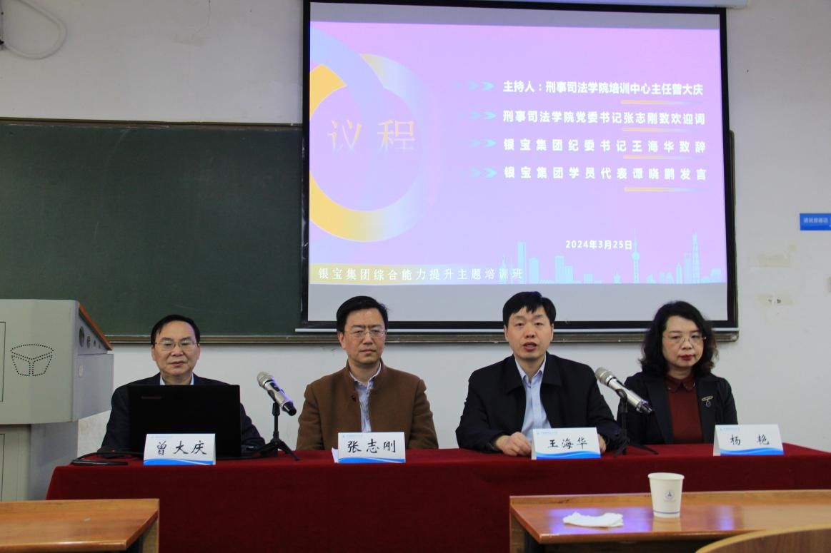 新闻网讯(通讯员 郭宸祎 周乐恒)阳春三月,江南草长。3月25日上午,2024年银宝集团综合能力提升主题培训班开班仪式在文澜楼408教室举行。中南财经政法大学刑事司法学院党委书记张志刚,银宝集团党委委员、纪委书记王海华,银宝集团党委委员、总会计师杨艳出席本次仪式。本次开班典礼由刑事司法学院培训中心主任、曾大庆副教授主持。