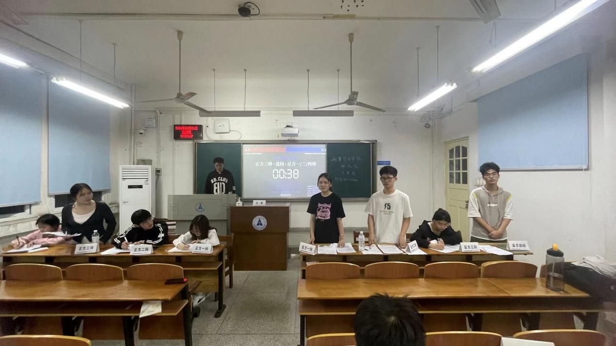 辩论赛上,唇枪舌剑,智慧交锋,金句频出。辩手们引经据典,慷慨陈词,逻辑严密,言语犀利。辩手们在立论时理清思路、立足论点、寻找证据,在驳论时仔细辨别、刨根问底、先声夺人。双方辩手在持续补充论据佐证己方观点的同时敏锐找出对方漏洞予以还击,在你来我往中碰撞思维,在逻辑交锋间擦出火花。随着对辩题的激烈讨论和思考的愈加深入,场内气氛也愈加热烈。