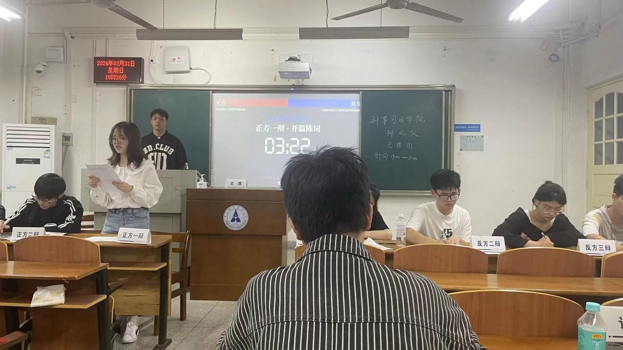 新闻网讯(学生通讯员 唐俊熠 黄芷妍)为增进两校学子之间的友谊,培养学生良好逻辑思维,提升反应能力和表达能力,3月31日晚19:30刑事司法学院辩论队与武汉纺织大学管理学院辩论队展开一场辩论交流赛。本次辩论赛的辩题是“社会秩序的维系主要靠法律/道德”,由我院砺剑辩论队队员罗莹、陈浩天、何银璠、邓元君四位同学持反方观点“社会秩序的维系主要靠法律”与武汉纺织大学辩手展开激烈论战。