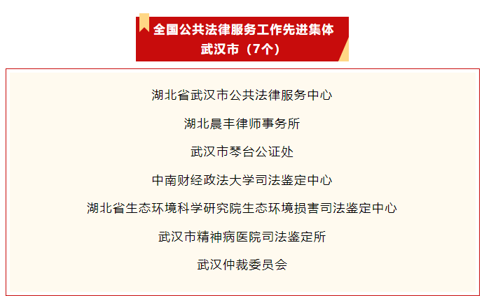 部分全国公共法律服务工作先进集体名单(来源:武汉市司法局)