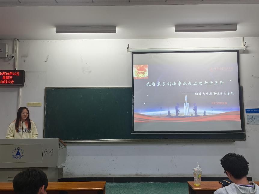 最后,为迎接新中国七十五华诞,公安2301团支部结合自身专业特色,从4月起特别开展了“我看家乡司法事业走过的七十五年——祖国七十五华诞特别系列”活动,本月由团支部杨宸雪同学为大家分享了自己家乡四川的司法事业在新中国成立以来的蓬勃发展。当地复杂的民情和多样的司法实践,让大家深刻感悟到新中国成立七十五年来的司法巨变。
