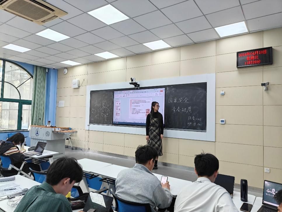 紧接着,团支书带领同学们开展了一场关于国家安全知识的竞赛。竞赛题目涵盖了国家安全法律法规、政治安全、经济安全、文化安全、危机应对等多个方面。面对多角度的提问,同学们激烈应答,同时也表达了自己的意见,包括维护制度安全的方式、如何确保经济安全等。国家安全知识竞赛不仅激发了同学们的学习热情,使大家对国家安全有了更全面的认识,还巩固了同学们对国家安全知识的理解和记忆。