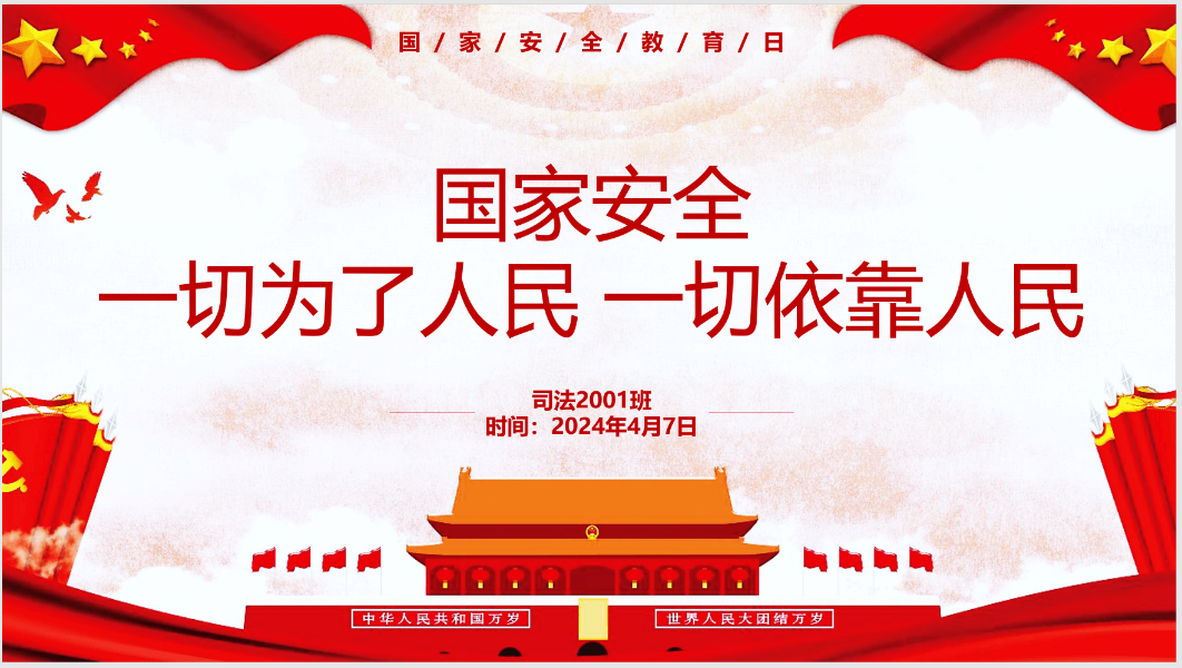 新闻网讯(学生通讯员 刘雅雯)2024年4月7日,为了响应第九个全民国家安全教育日的号召,司法2001班通过线上会议的形式,成功举办了“国家安全 挺膺担当”主题团日活动。此次活动旨在加强学生的国家安全意识,培养责任担当,自觉维护国家主权和安全。