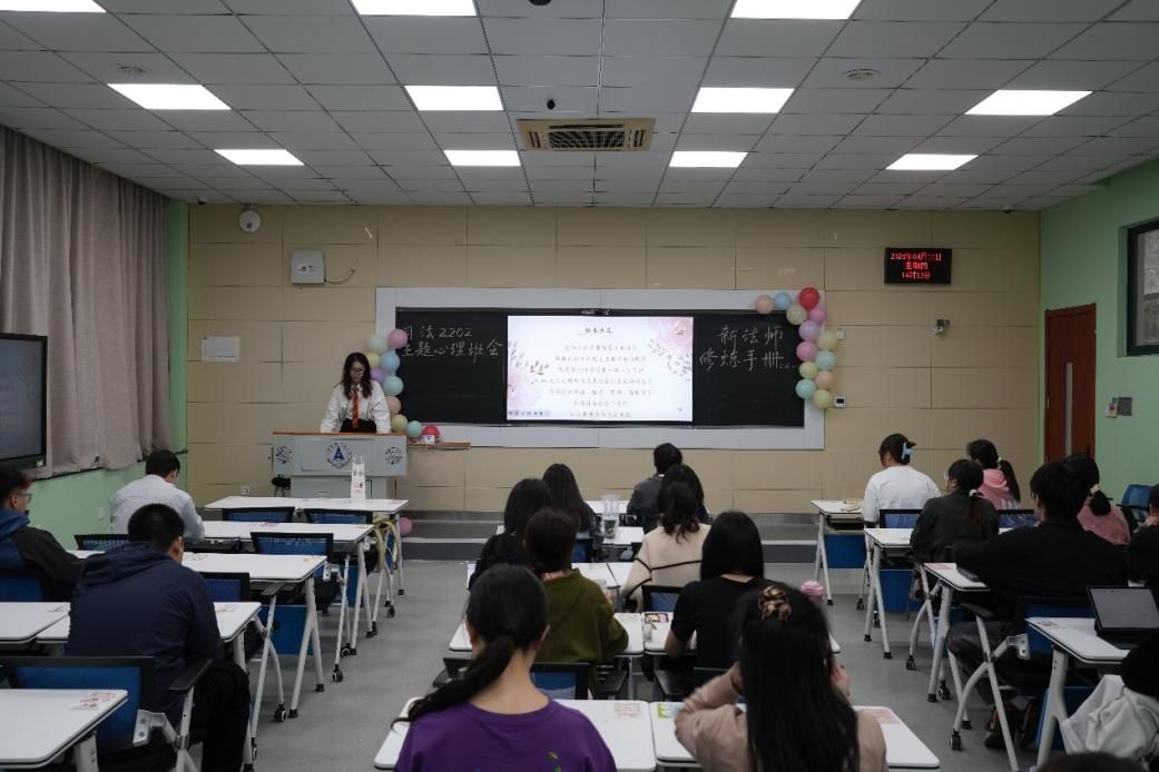 新闻网讯(学生通讯员 程小航 李燃)为了帮助同学们更好地适应专业分流后新的学习环境,增强班级凝聚力,4月9日下午,司法2202班于文波109、205教室开展了“新法师修炼手册”主题心理班会。