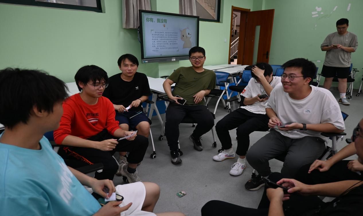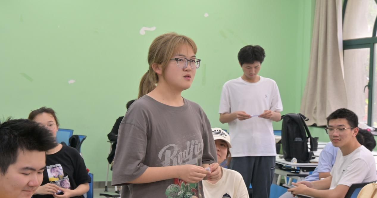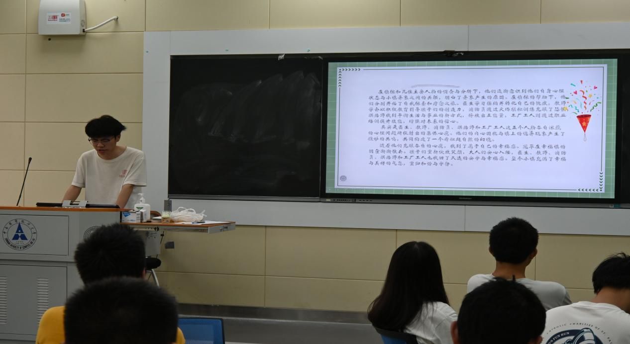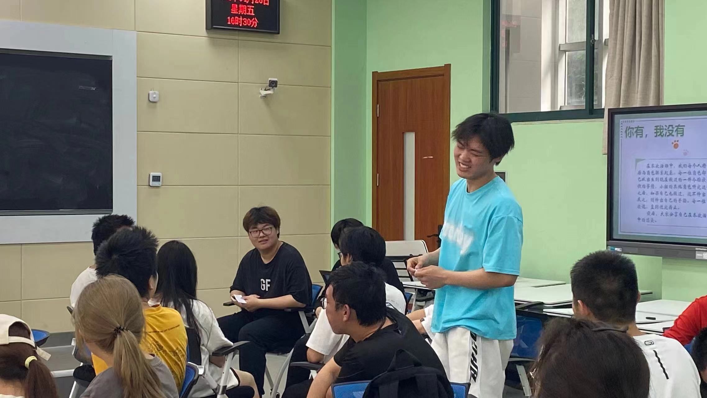 班会第四项,也是整场班会最重要的环节,心理委员让每一个小组扮演侦探的角色亮明自己的身份。接下来,小组中扮演其他角色的成员根据自己拿到的剧本进行表演,但是在表演过程中只能展示肢体动作而不可以说话。侦探们需要根据大家的表演猜出每一位的成员的身份,了解其身份背后的故事,并为他提供解决方案。第二步,侦探们也为其他成员讲述了自己的故事。曾受到侦探帮助的角色们也纷纷为侦探出谋划策,帮助他寻找到自己的幸福。大家相互倾诉、相互帮助,一时间教室里欢声笑语,大家都十分感动。