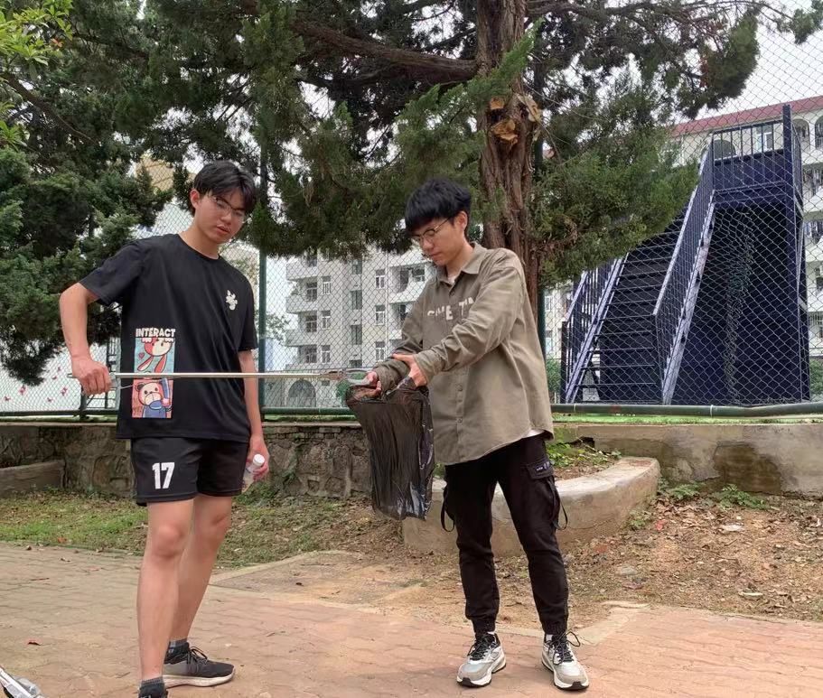 下午一点,志愿者们携带着清洁工具在文治楼前集合,并在负责人的带领下有序出发。沿着中南大道和中区主干道路,志愿者们沐浴着和煦的春风,积极投入到志愿工作中去。他们专注清理每一块草地、每一片树荫、每一处死角,细致入微地对校园环境进行清洁优化。饮料瓶、垃圾袋等大型物件在分秒间就被志愿者们高效清理,而枯叶烟蒂、果皮纸屑等小型垃圾也没有逃过志愿者们的火眼金睛。大家分工协作、各司其职,却又不忘紧密配合、并肩作战,展现出刑司学子良好的合作精神和高效的工作作风。
