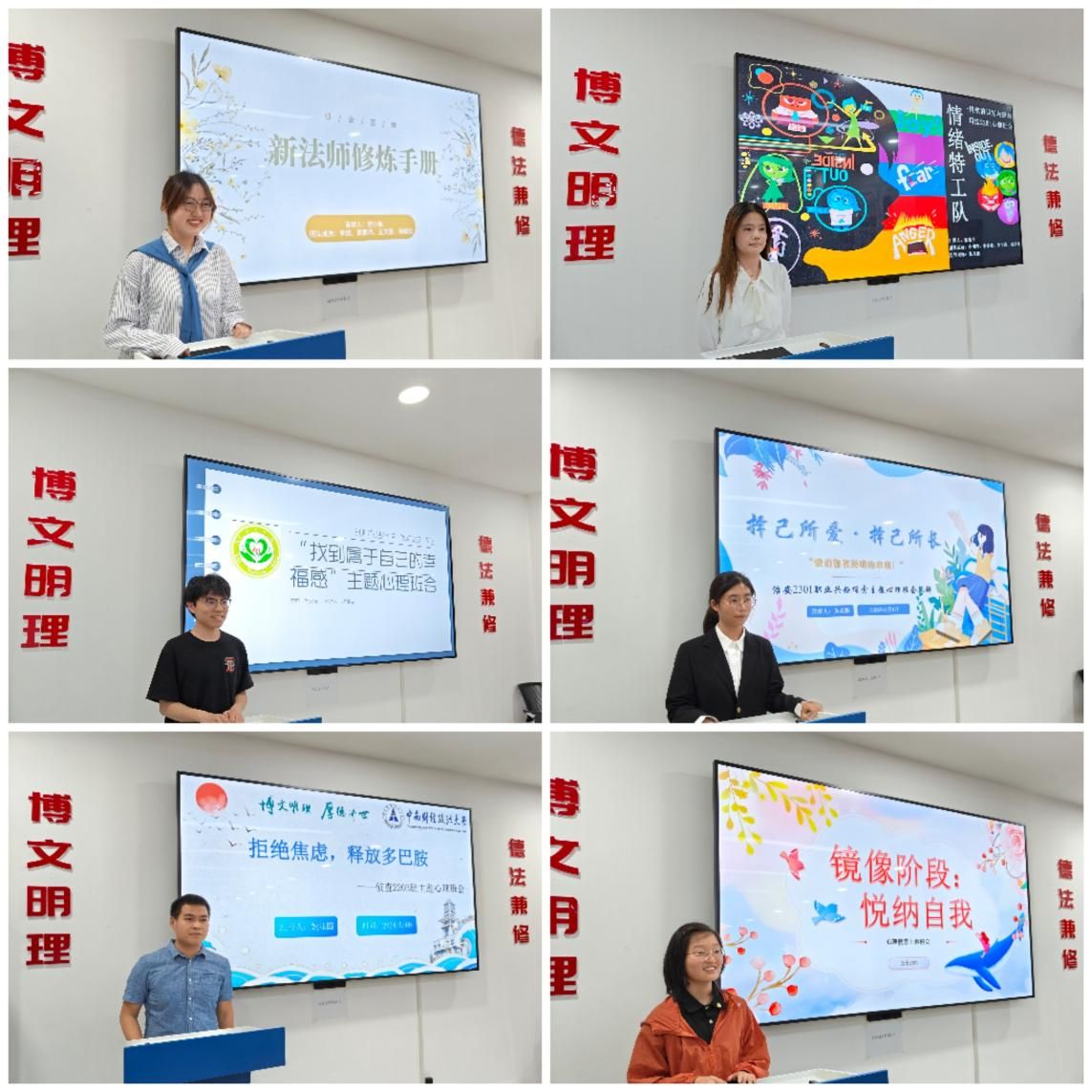 司法2201班情绪特工队以情绪的识别与应对为主题,开展四部分活动内容:认识情绪·情绪的定义和种类、发现情绪·自我觉察与情绪识别、接纳情绪·拥抱每一种情绪、调节情绪·做情绪的主人,并且在相应的环节中引入了“情绪清晰度”、“耶基斯-多得森定律”“情绪ABC理论”以及“如何识别和接纳情绪”的心理学理论。