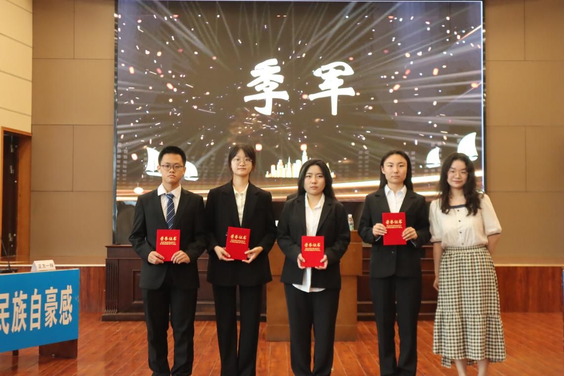 赛事第三项,由保卫部办公室主任李梦实和优秀辩手方睿敏分别给本次大赛的冠军金融学院和季军会计学院颁奖。在颁奖仪式上,评委对双方辩手的表现给予了高度评价,并鼓励他们继续发扬思辨精神,为学术研究和思想交流贡献更多力量。