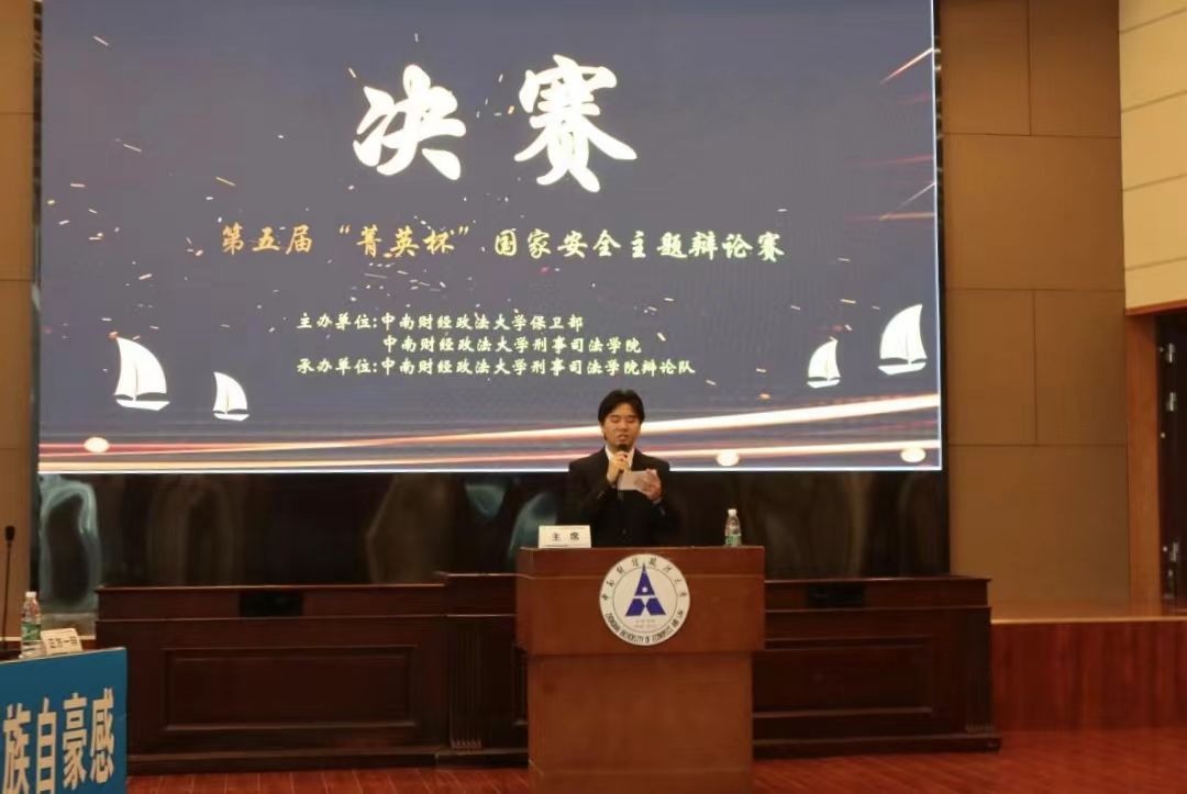 新闻网讯(学生通讯员 罗依 王崎 朱彬彬)5月23日,备受瞩目的第五届“菁英杯”国家安全主题辩论赛在文泰楼模拟法庭一火热进行。中韩新媒体学院辩论队与金融学院辩论队经过激烈的思想碰撞和严谨的逻辑推理,为观众们呈现了一场精彩的思辨盛宴。保卫部办公室主任李梦实、第五届湖南省湘辩论道辩论赛亚军付雅睿、中南财经政法大学辩论队队长李旖洋、2020临潮杯长沙赛区冠军方睿敏、中南财经政法大学探索杯冠军韦雯萱、2022英采中南最佳辩手张静昕作为评委出席本次辩论赛。