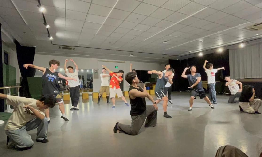 人生在勤,勤则不匮。麦盖提县振兴的背后,是援疆干部和当地村民辛勤劳作的结果,舞台上热情奔放,刚劲有力的动作、默契十足的配合背后则是舞团成员们日夜兼续的训练。今年的刑司舞团大多都是毫无舞台经验的新人成员,更何况,此次选择的舞蹈又是在“荷花奖”舞台上以绝对高分荣获冠军的剧目《阳光下的麦盖提》,剧目中的动作又独具新疆特色,压力来到了带训团长身上,刑司舞团历届三任团长刘昊元、侯昊坤、任旨乐齐上阵,开展一对一指导训练,动作不标准?练!节奏韵律不对?练!表情不够投入?练!从日落到天黑,从凉爽到炎热。小球馆的体操房、文瀚楼前的空地、深夜的排练厅,训练成了他们生活的常态,“麦盖提的小伙们”克服重重困难,刻苦训练,以刑司舞团人坚定的意志与必胜的决心,向全校师生展现了顽强拼搏、奋发向上的刑司精神!