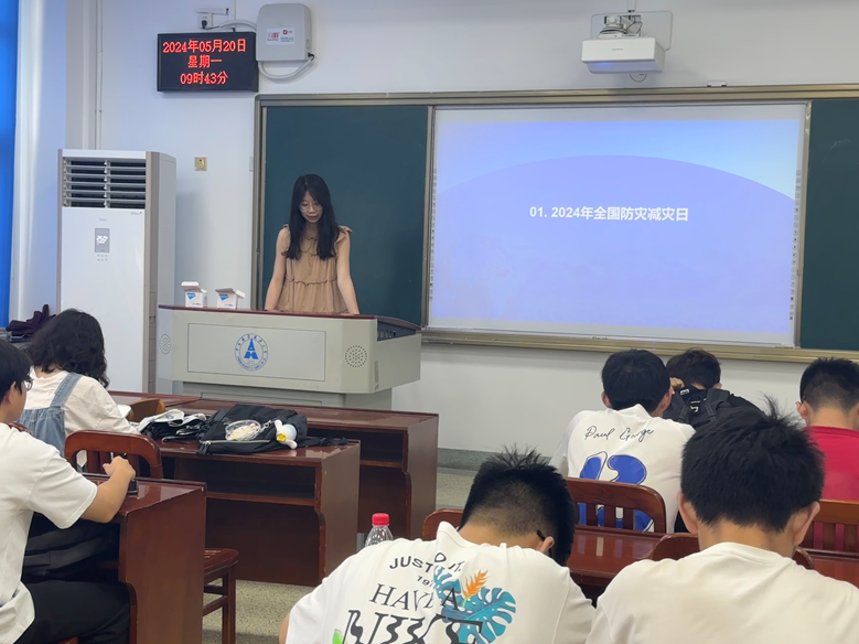 活动第一项,团支书陈可璇向同学们介绍了全国防灾减灾日设立的背景和意义,并强调了开展防震逃生演练的重要性。她表示,同学们要高度重视安全教育,积极配合应急演练活动,营造平安和谐的校园环境。在团支书的讲解下,同学们对全国防灾减灾日有了更为全面的了解。