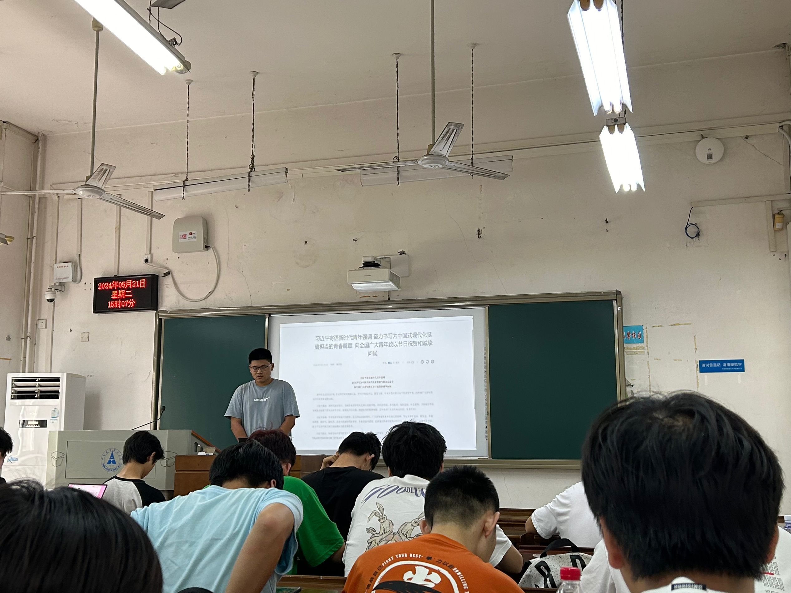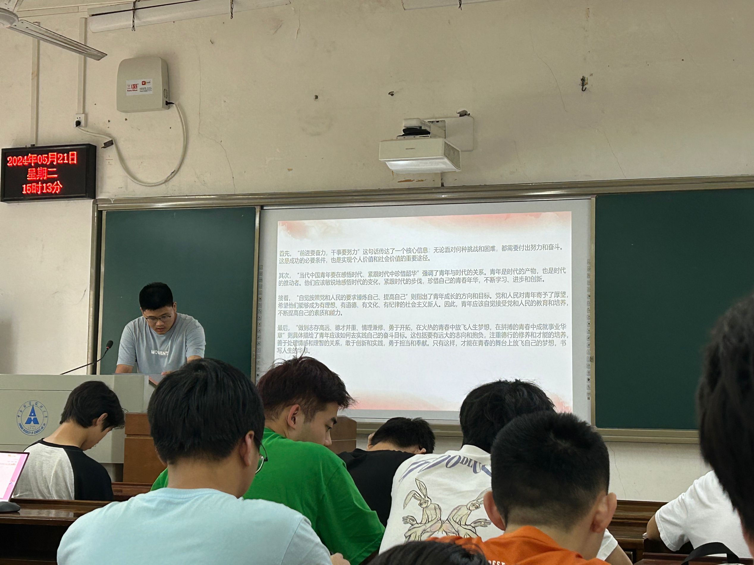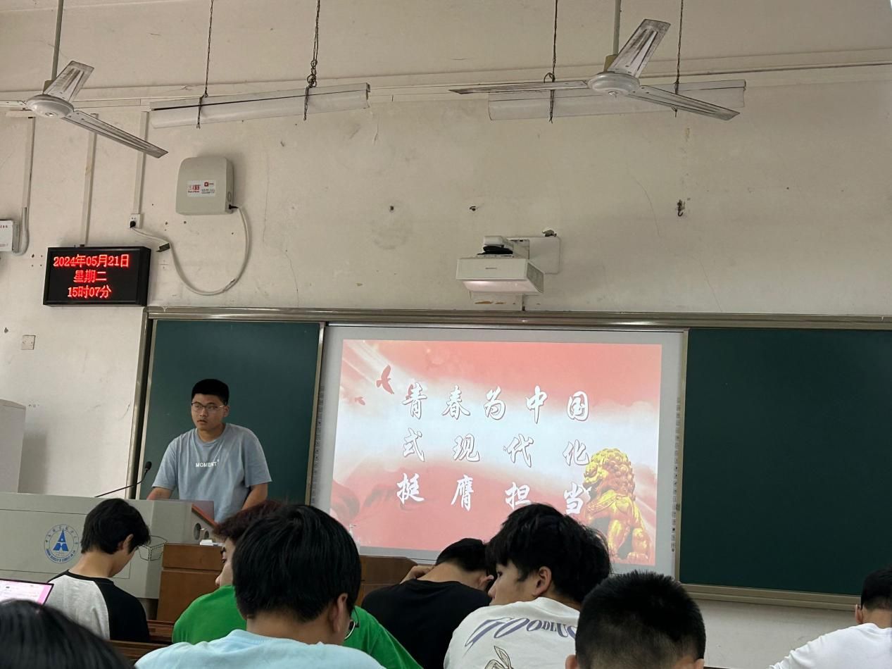 活动第一项,团支书李广福同学通过习近平总书记在今年五四青年节对新时代青年的寄语,引出青春为中国式现代化挺膺担当的主题。