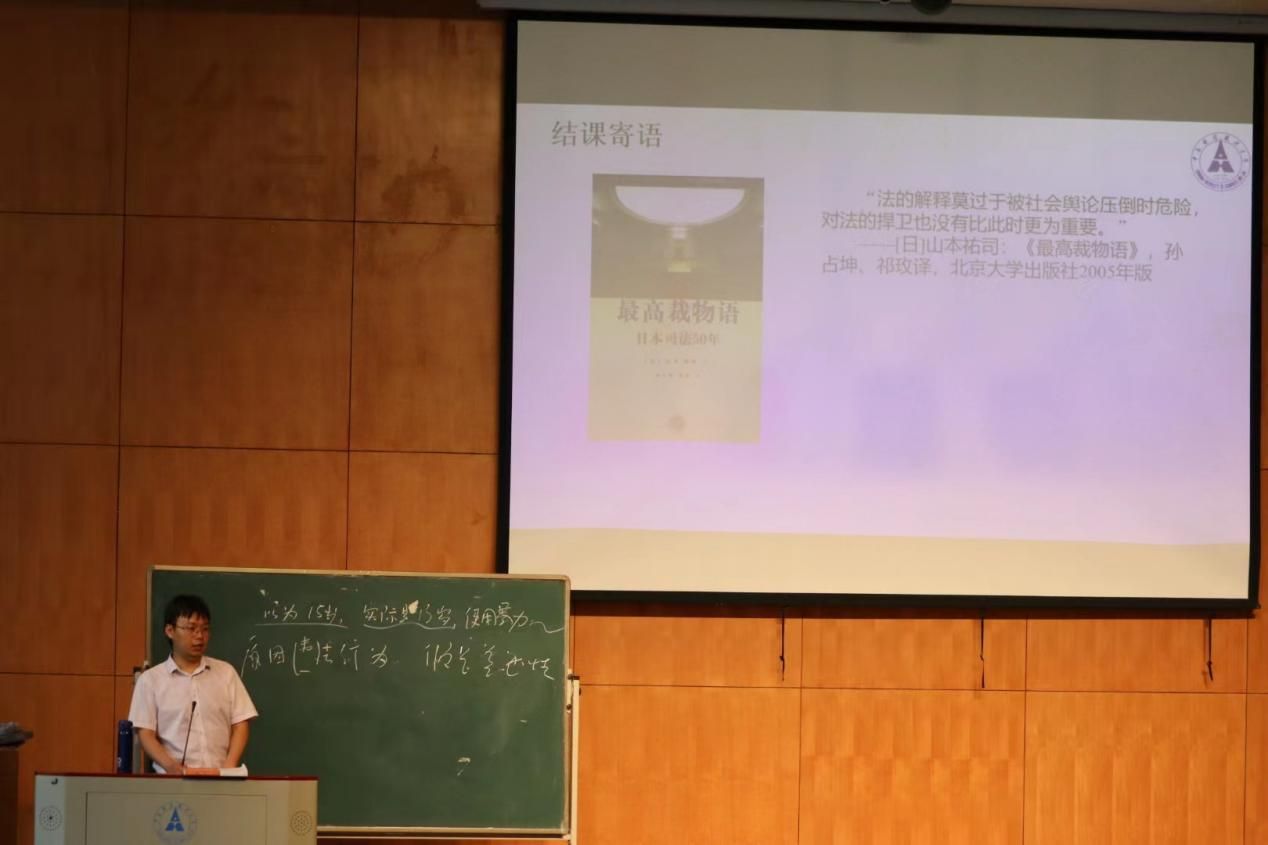 四是要在学习刑法理论的同时树立起对法治的信仰。正如山本祐司在《最高裁物语》中所言:“法的解释莫过于被社会舆论压倒时危险,对法的捍卫也没有比此时更为重要。”姚老师希望同学们要在心底把法律当作自己行为和主张的基础,真正成为法治的忠实崇尚者、自觉遵守者和坚定捍卫者。