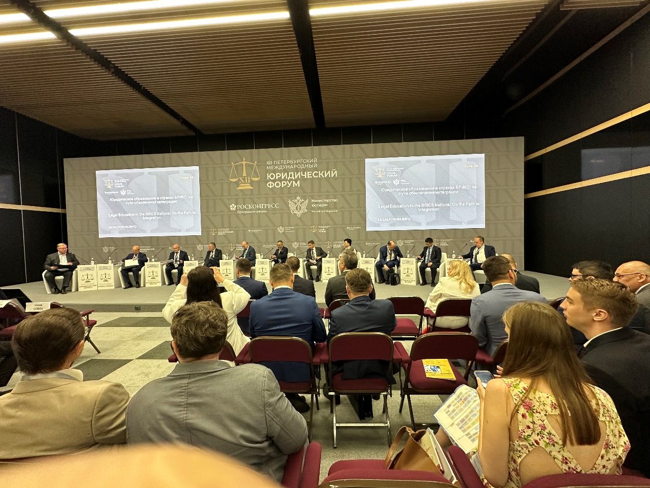 2024年6月2日至28日, 由俄罗斯联邦司法部牵头举办的以“法律——全球均衡的基础”为主题的第十二届圣彼得堡国际法律论坛上,来自全球80多个国家和地区的政府官员、法律教育者与律师齐聚一堂,共同探讨全球挑战下法律的发展与合作路径。中国司法部、陕西和甘肃司法厅领导及部分政法高校的专家学者参加了有关活动。我院胡向阳教授和吴风老师参加了法律教育分论坛活动。