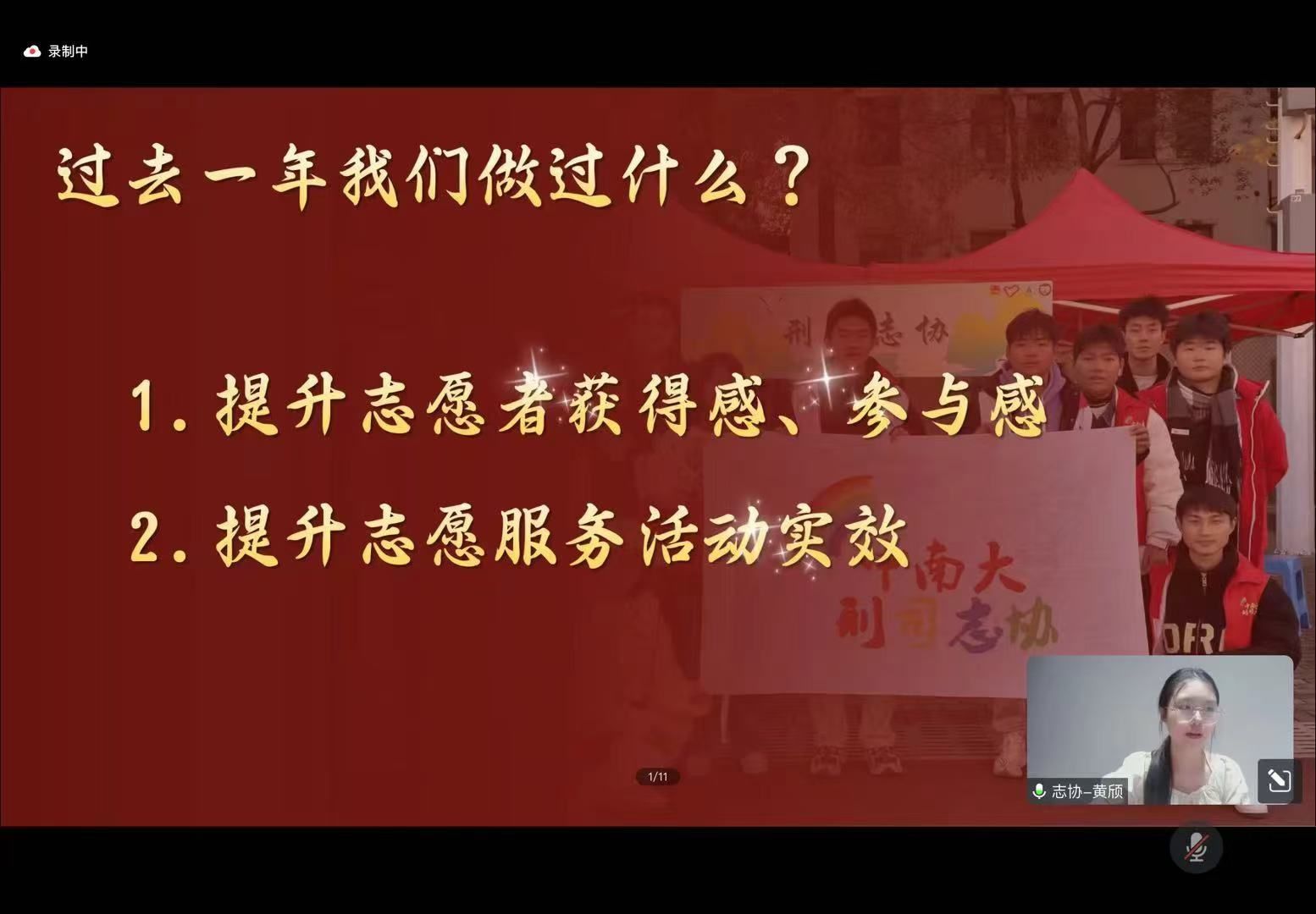 接下来,由刑事司法学院团委学生干部进行团学生活展示。院团委学生干部郭宸祎、朱彬彬、黄颀分别向大家介绍了刑事司法学院团委、刑事司法学院学生会、刑事司法学院志愿者协会。团委的兢兢业业、学生会的踏实勤恳、志愿者协会的热心助人深深打动了线上所有同学。三位学生干部在最后鼓励2024级新生踊跃参与团学组织,在中南大的广阔舞台上不断锻炼本领、提升自我、发光发热。
