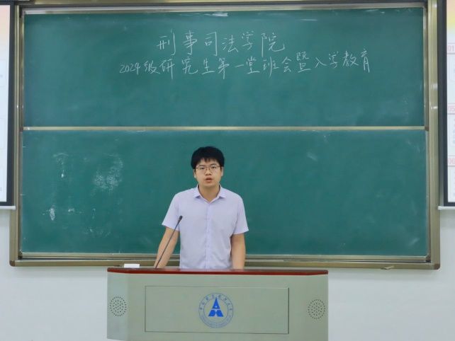 新闻网讯(学生通讯员 王惠 摄影 肖思言)为深入学习贯彻习近平总书记关于研究生教育的重要指示精神,落实立德树人根本任务,进一步做好2024级研究生新生入学教育工作,9月12日下午,刑事司法学院2024级研究生第一堂班会暨入学教育于南湖校区文泰楼319顺利举行。刑事司法学院研究生办公室主任王晓丹、分团委书记张凡稷、研究生辅导员柯希鹏及2024级全体研究生参会,会议由刑事司法学院研究生会主席团成员侯安悦主持。
