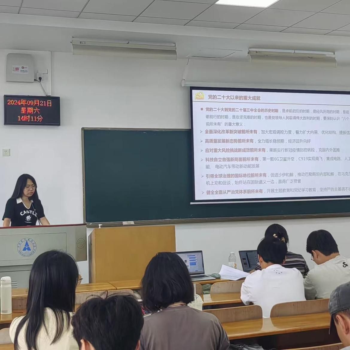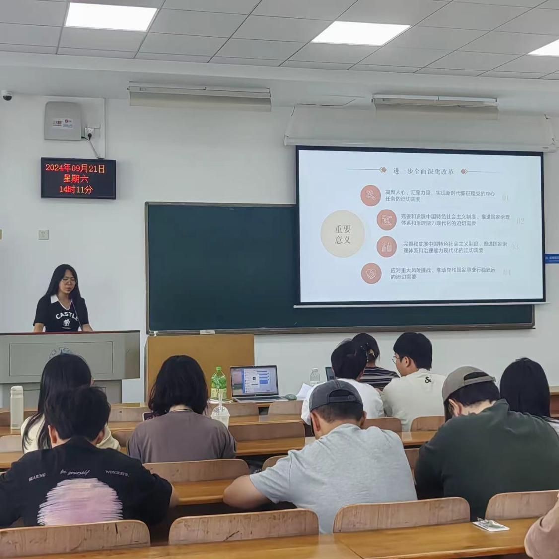 新闻网讯(学生通讯员 余越)奋进强国路,阔步新征程。为学习贯彻党的二十届三中全会精神,9月21日,刑事司法学院司法2202班团支部积极响应党的号召,开展了“深化改革启新程,青春奋进谱华章”主题团课活动。此次团课旨在引导广大团员青年深入学习领会全会精神,深刻领会和把握进一步全面深化改革的主题、重大原则、重大举措、根本保证,将党的最新理论成果转化为实际行动的指南,激励同学们在新时代的征程上勇担使命,砥砺前行。