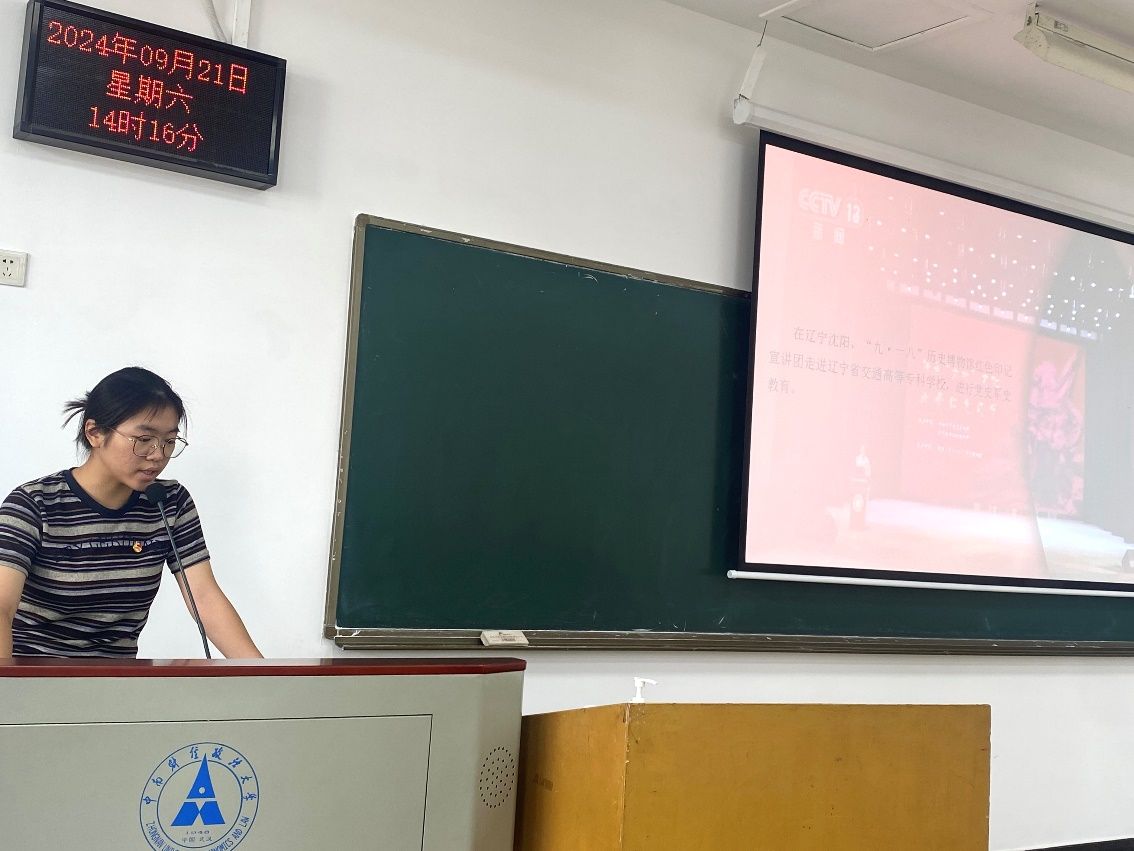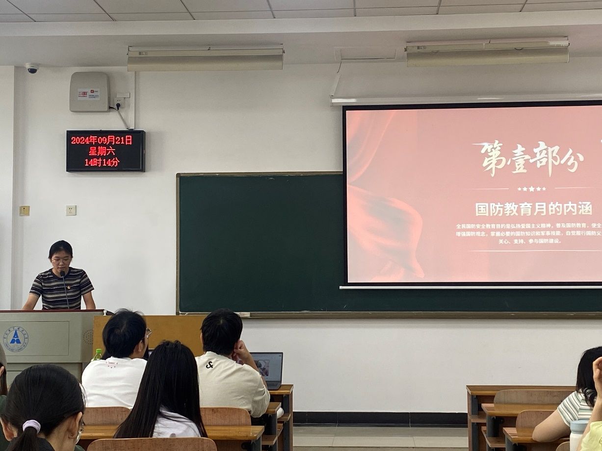 接下来,班会聚焦国防教育月活动。主持人带领同学们回顾了学院志愿者协会的“九·一八”事变爱国主义宣讲及酒泉卫星发射中心航天故事分享,激发了同学们的爱国情怀与责任感。主持人呼吁大家积极参与国防教育,以实际行动践行爱国主义精神,将个人梦想融入国家复兴大业,共筑强国梦,不负青春韶华,为实现中华民族伟大复兴的中国梦而努力奋斗。