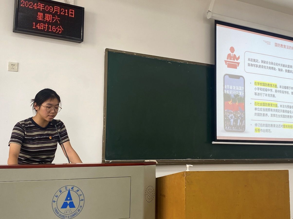 国防安全是国家生存与发展的重要保障,国防教育则是建设和巩固国防的基础,是增强民族凝聚力、提高全民素质的重要途径。李羽姗同学从国防教育月的内涵、国防教育法的修订、国防教育月的活动以及国防视频学习内容四个方面为开展国防安全教育,助力同学们深刻领悟国防教育的内涵,增强爱国意识。