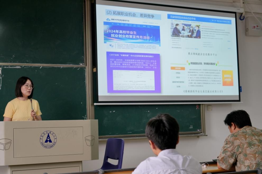 紧接着,兰老师对就业准备工作提出了四点建议:一是把握学生身份,主动出击,积极寻求就业机会;二是通过差异竞争提升自己的竞争力;三是分阶段训练,为职业生涯打下坚实基础;四是灵活适应趋势,持续迭代自己的知识和技能,以适应不断变化的就业市场。