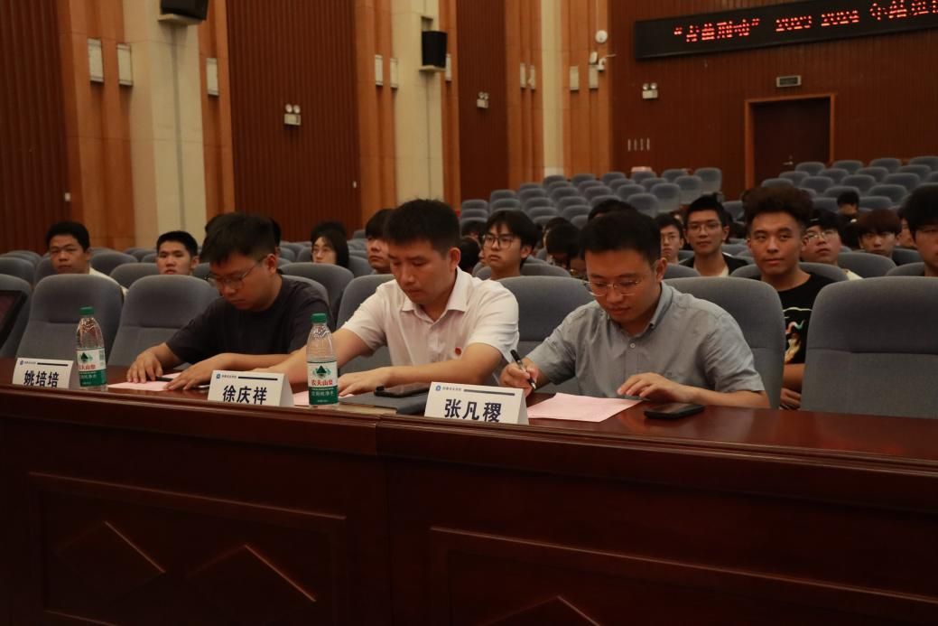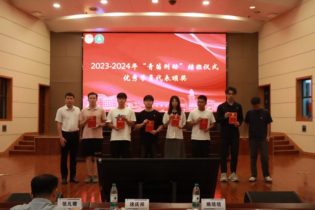 在主持人宣读2023—2024学年“青苗刑动”培训班优秀学员名单后,徐庆祥、姚培培为优秀学员代表颁发证书。一封封证书见证着一年来青马班优秀学员的不懈努力与丰厚收获。