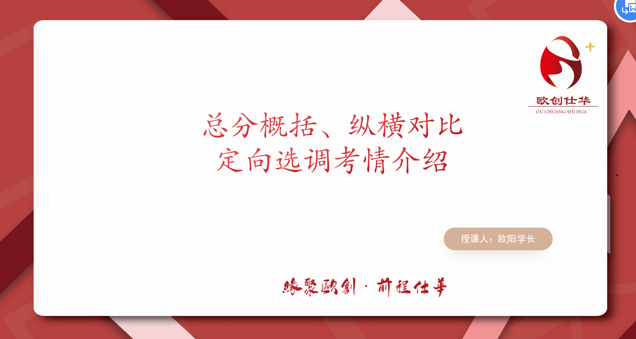 宣讲会伊始,欧创仕华机构负责人以2024年的最新数据为依据,深入分析了我校2024年定向选调的整体情况。他强调了备考策略的重要性,并指出2024年定向笔试考情的新变化以及2025年备考的关键方向。