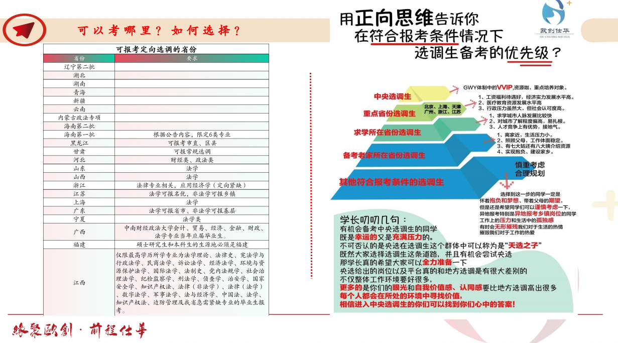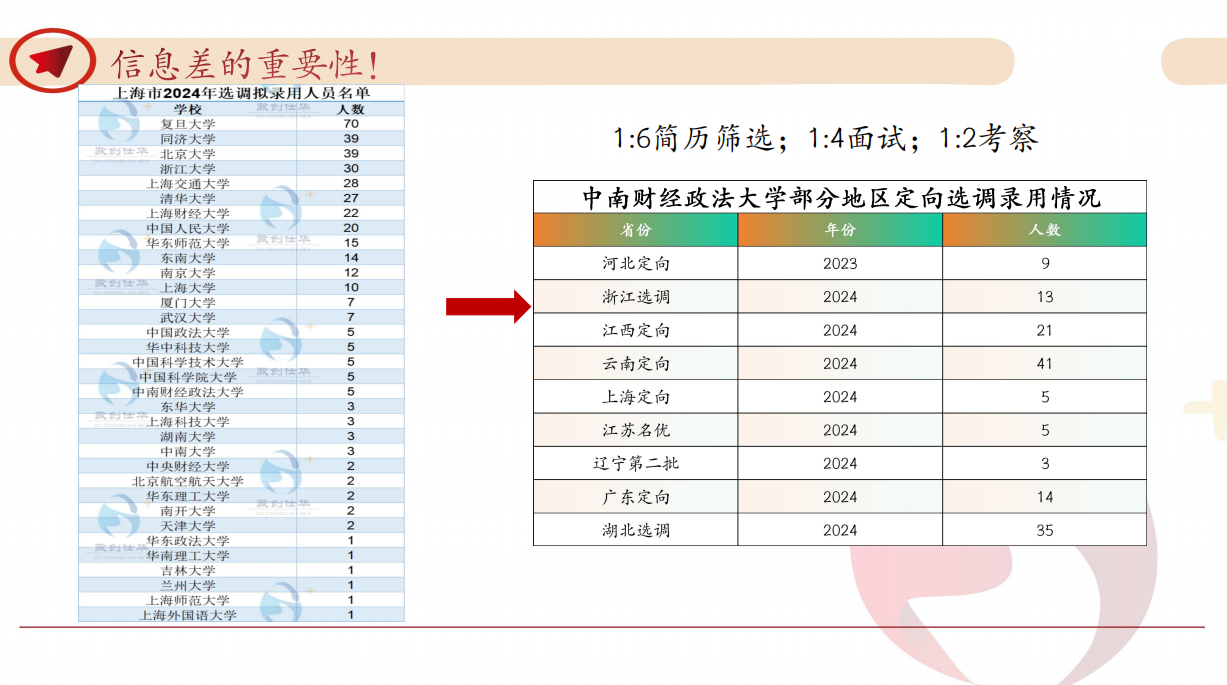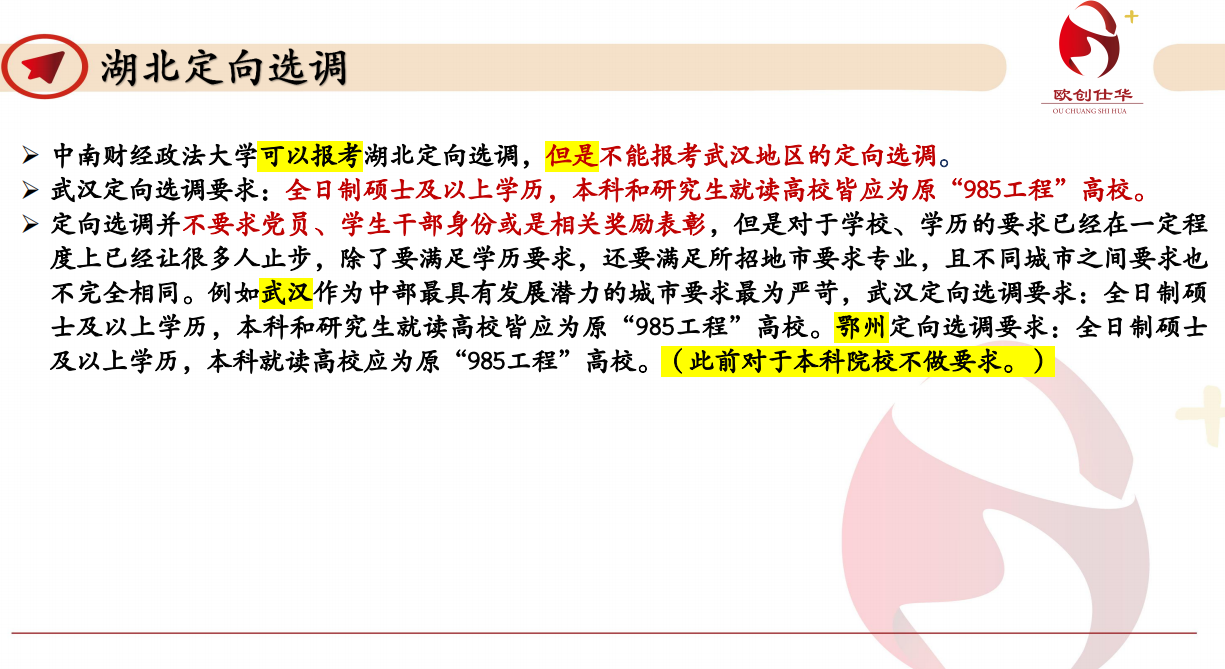 最后,针对湖北省内定向选调考情,负责人从招录人数、时间节点、考试内容、工资待遇、分配原则等多个维度作出全面细致的解读,帮助同学们把握最新信息,为备考提供有力支持。