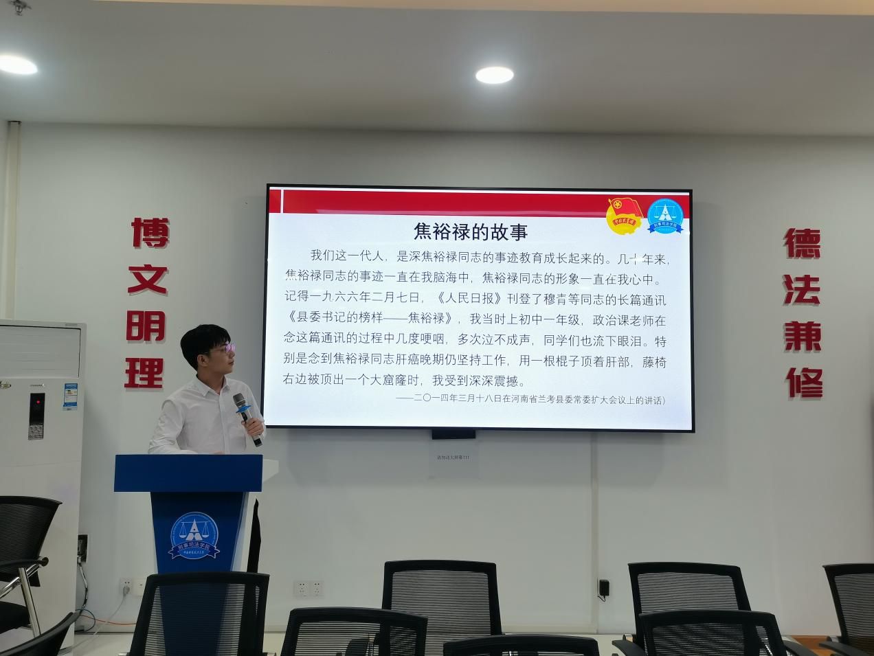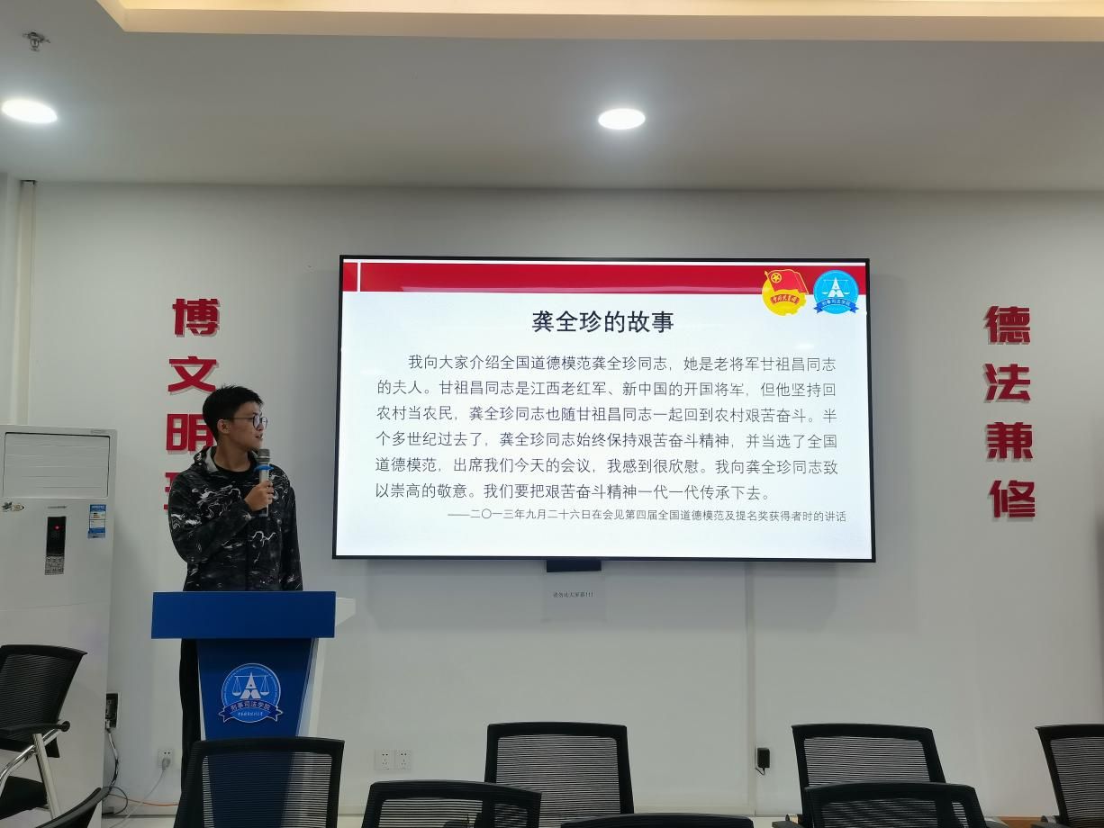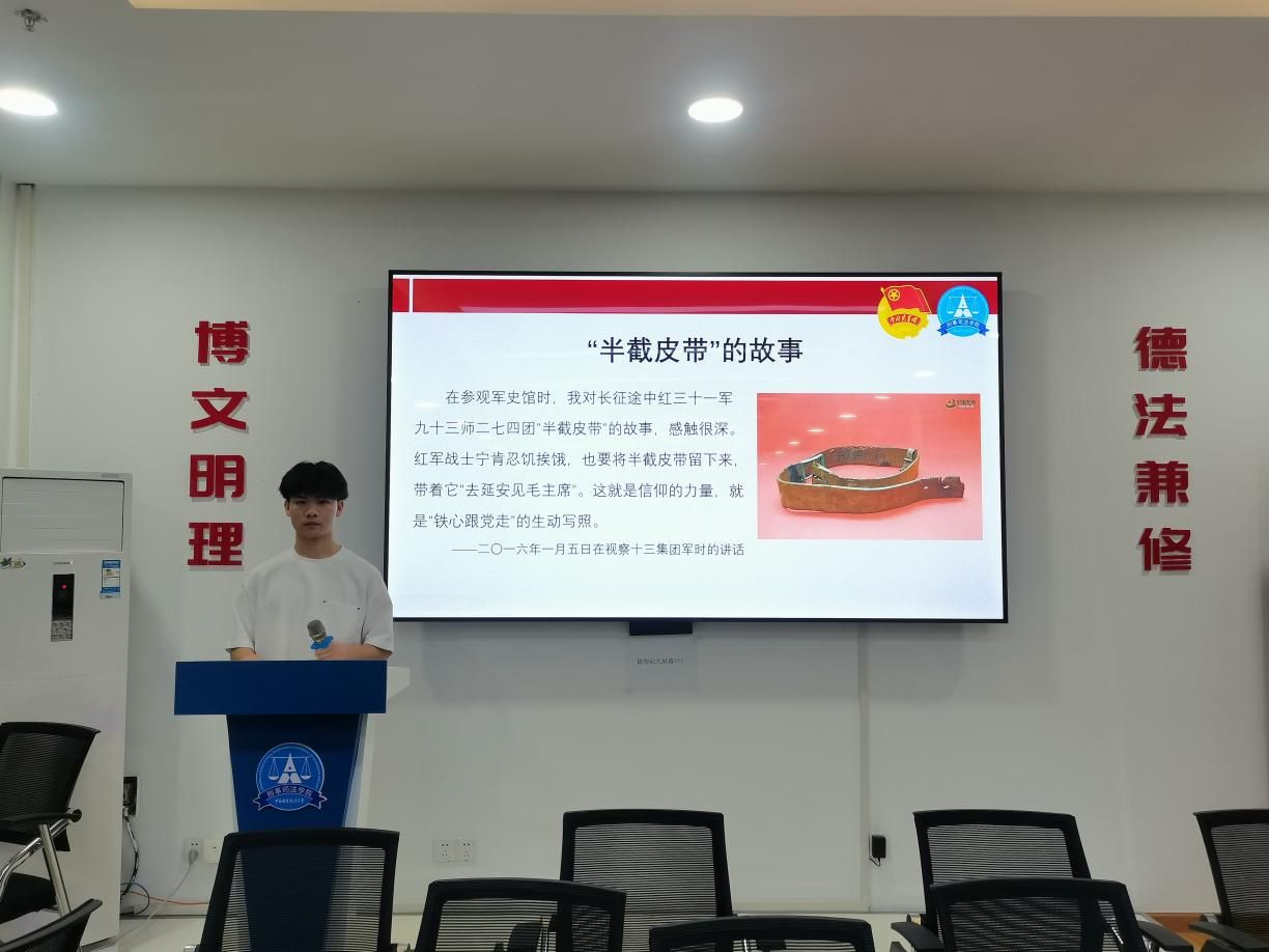 在自由交流环节,同学们积极踊跃发言。院志愿者协会主席团成员吕长骏和国旗护卫队副队长杜昊轩分别分享了焦裕禄同志和龚全珍同志的故事,赞颂了他们艰苦奋斗、一心为民的精神,院团委组织部副部长潘锋讲述了“半截皮带”的故事,展现了红军信仰的力量,现场气氛热烈。