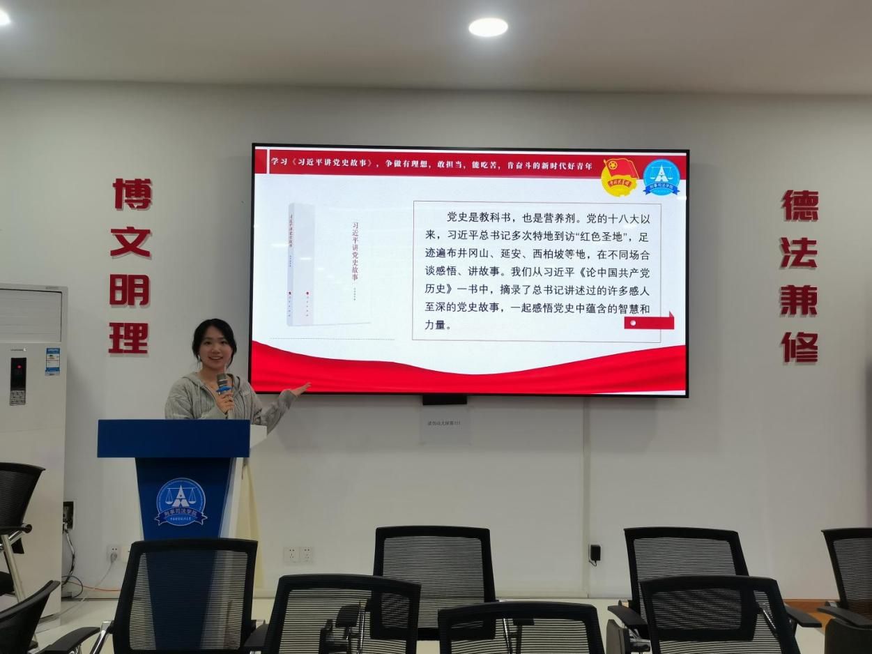 活动第三项,在团学青年分享阅读学习心得过程中,院学生会主席团成员黄希哲分享了《习近平讲党史故事》的读书心得。她表示,通过阅读党史故事,更加深刻的认识到党之所以能历经磨难而不断壮大,是因为其始终与人民群众保持密切联系,始终代表最广大人民的根本利益。风雨多经志弥坚,关山初度路犹长,因此在今后工作、学习和生活中,广大青年应以革命先辈为榜样,坚定理想信念,“不忘初心、牢记使命”,以更坚定的信念,更饱满的精神,乘势而上,为中华民族伟大复兴而奋斗。