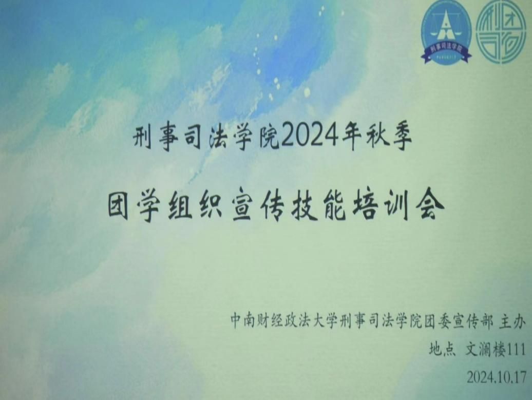 新闻网讯(学生通讯员 谢昀含 钟恒博 许欣萍)为提升团学组织成员宣传技能水平,加强学院团学组织宣传队伍建设,增强团学组织文秘部门的凝聚力和战斗力,10月17日下午4时,刑事司法学院在文澜楼111召开2024年秋季团学组织宣传技能培训会。此次会议由刑事司法学院团委宣传部主办,来自全院各团学组织文秘部门的100余位宣传干事参加此次会议。