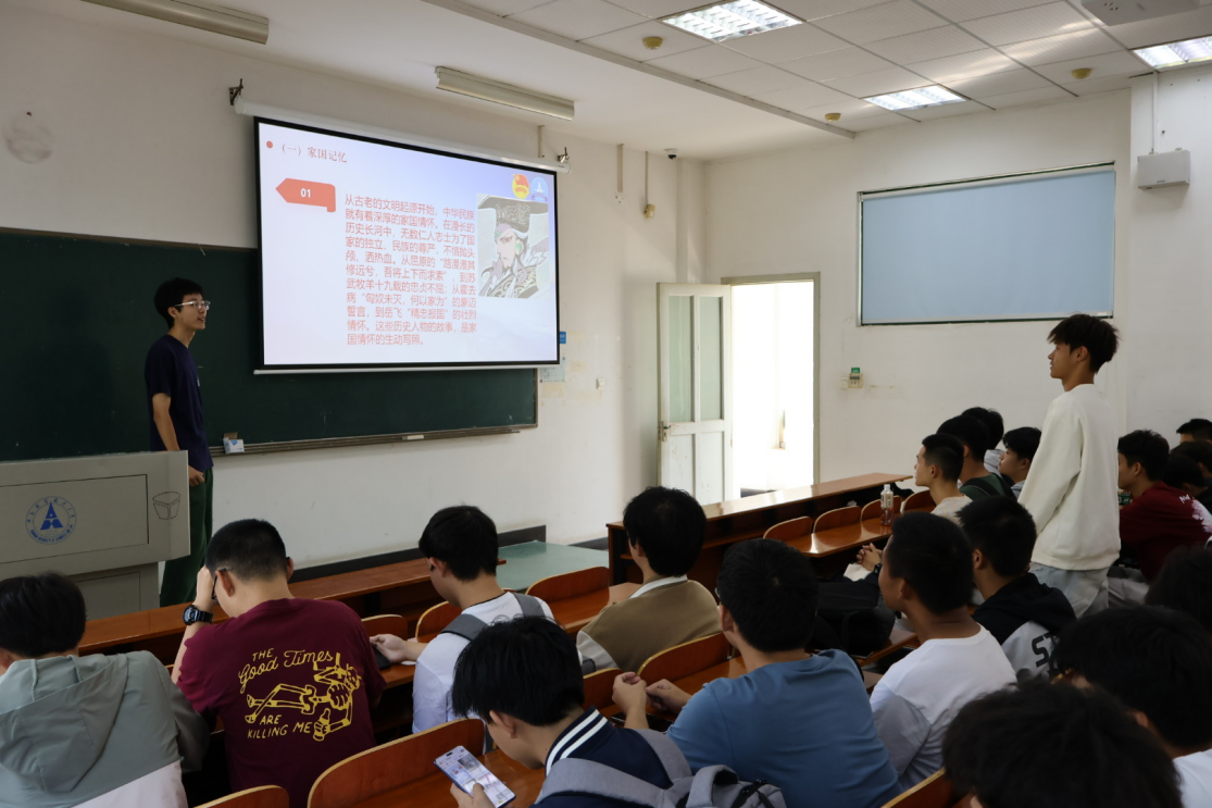 为强化爱国主义教育,增强支部团员青年对党和国家的认同感、归属感、自豪感,团支部成员伍家楠向大家分享了自己家乡佛山的一批革命烈士与优秀干部。在他的介绍下,同学们更加深刻地认识到了强国建设的不易,立志努力投身到祖国的发展中。