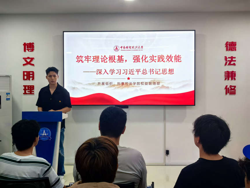 活动伊始,权益联络部负责人何银璠简要介绍了此次活动的主题,强调了理论学习、思想建设的重要性,并鼓励大家将这些思想运用到权益工作中,巩固理论基础,提升实践效能。